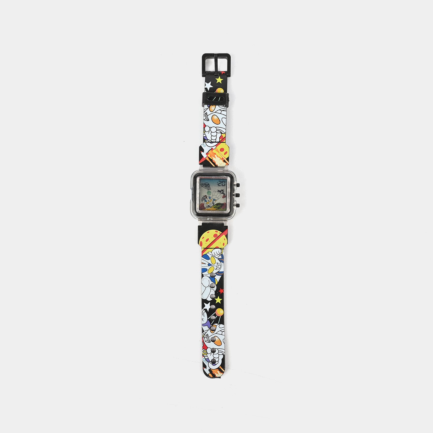 Kids Adjustable Strap Watch with a retro arcade-inspired design featuring a square digital display. The adjustable strap ensures a comfortable fit for growing wrists, while the lightweight construction makes it ideal for active play. Perfect for young gaming enthusiasts who appreciate nostalgic style.