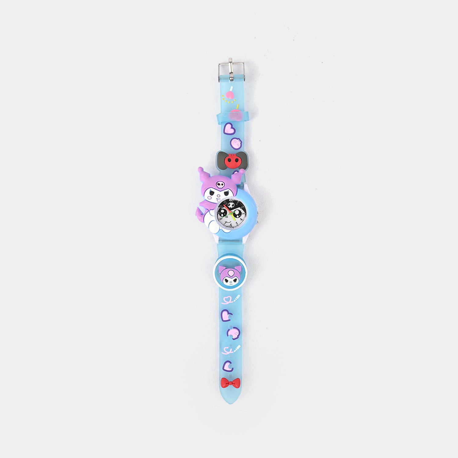kuromi-themed girls digital watch in blue, featuring a clear display. The adjustable strap and secure buckle make it perfect for comfortable everyday wear.