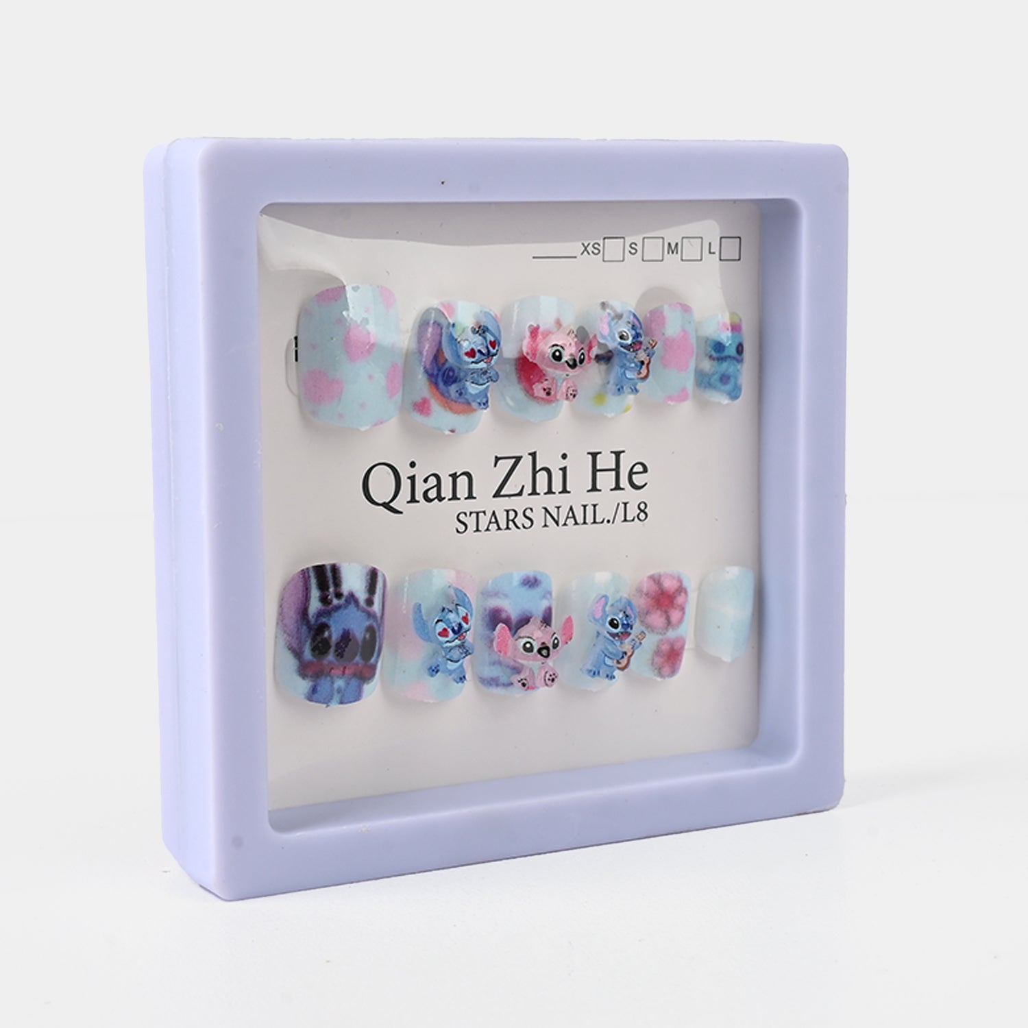 Cartoon Nail Set – Cute Blue & Pink Designs