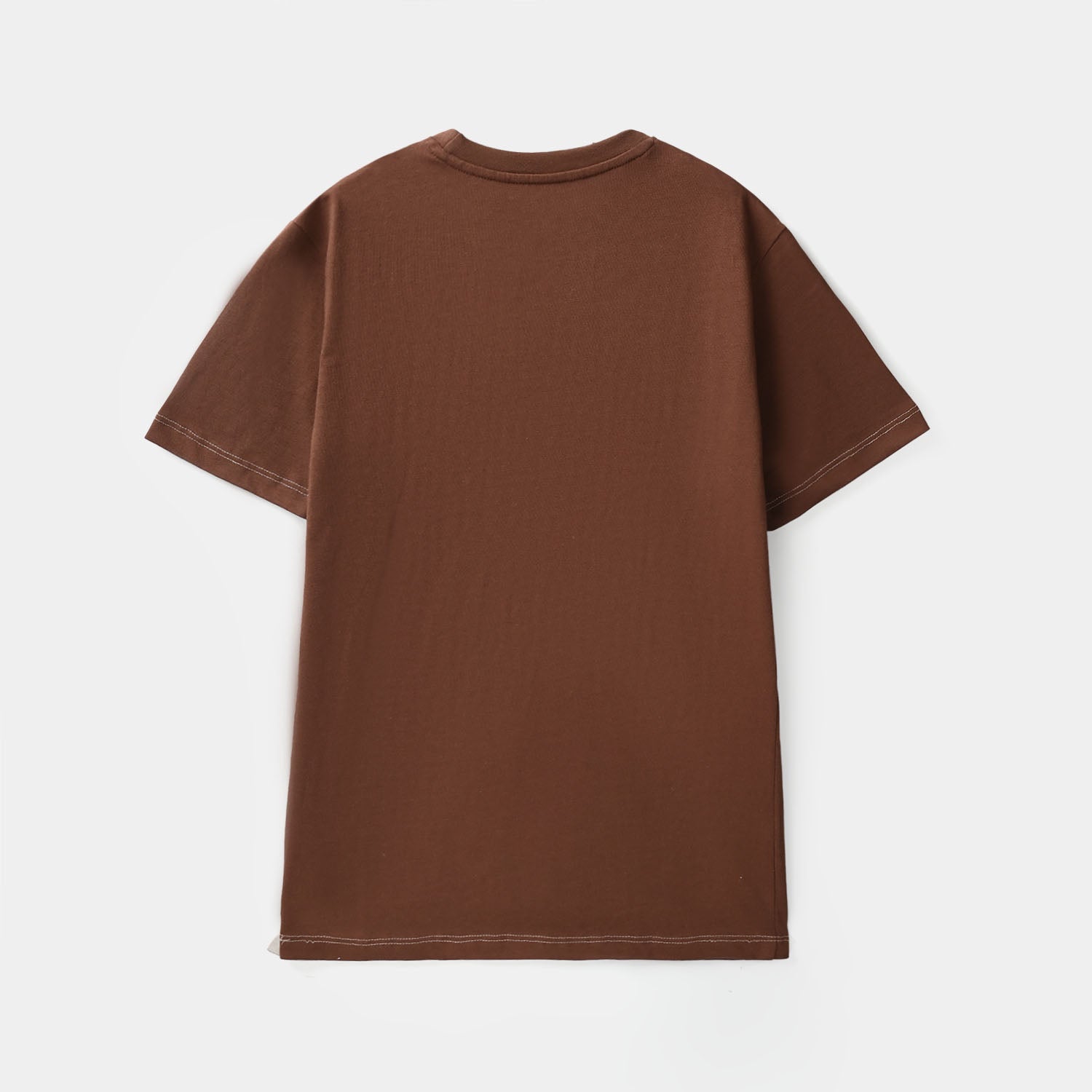 Boys' brown cotton jersey T-shirt featuring a round neck and half sleeves, perfect for casual and comfortable everyday wear.