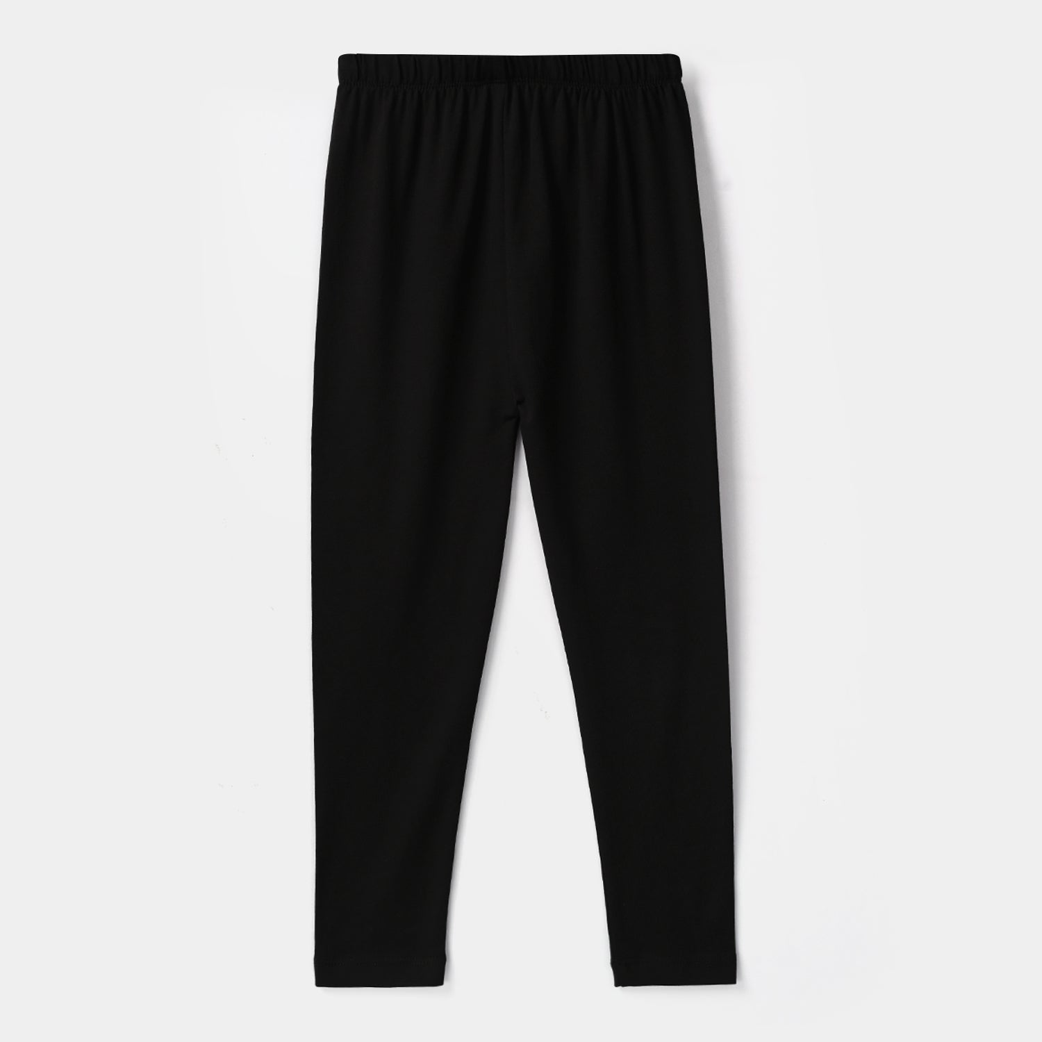 Girls lycra jersey tights in black featuring a comfortable stretch fit for everyday wear.