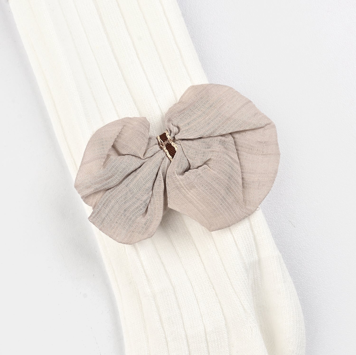 These cotton tights with attached socks provide a soft, breathable fit for baby girls in spring and autumn. The one-piece design, featuring a delicate princess bow, keeps little ones warm without overheating while offering comfort and style.