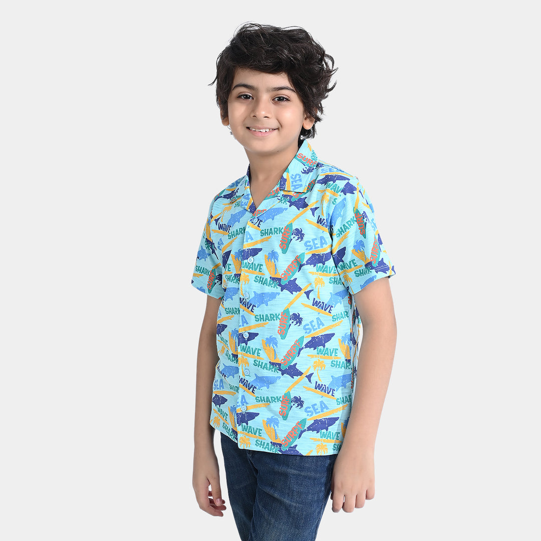 Boys Cotton Viscose Casual Shirt H/S Printed-Blue