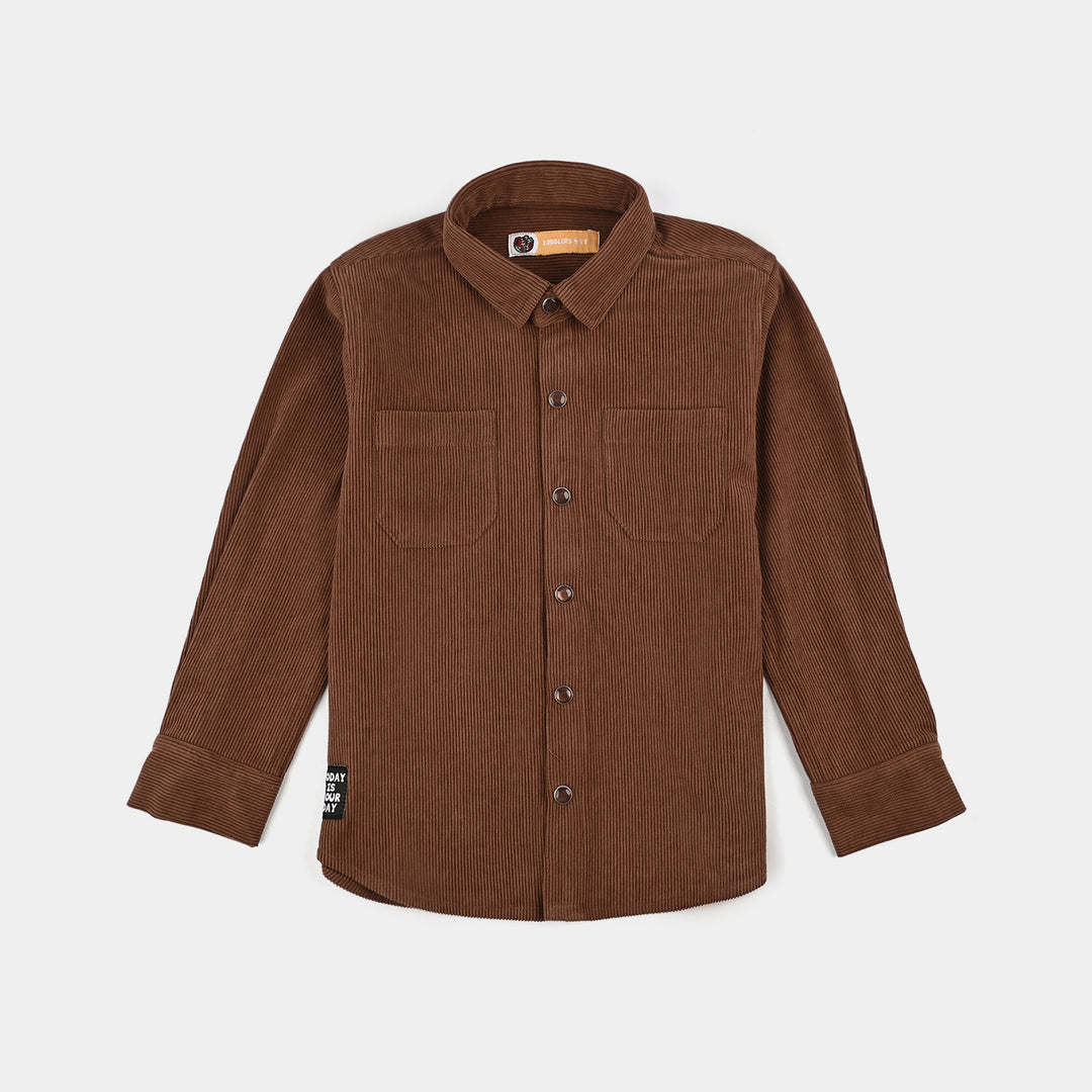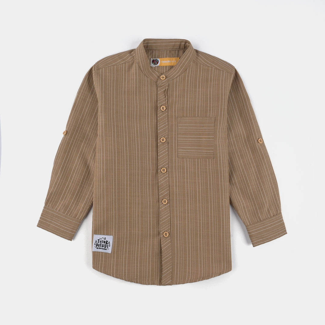 Boys Cotton Poplin Printed Kurta (Fudge Sickle)-BROWN