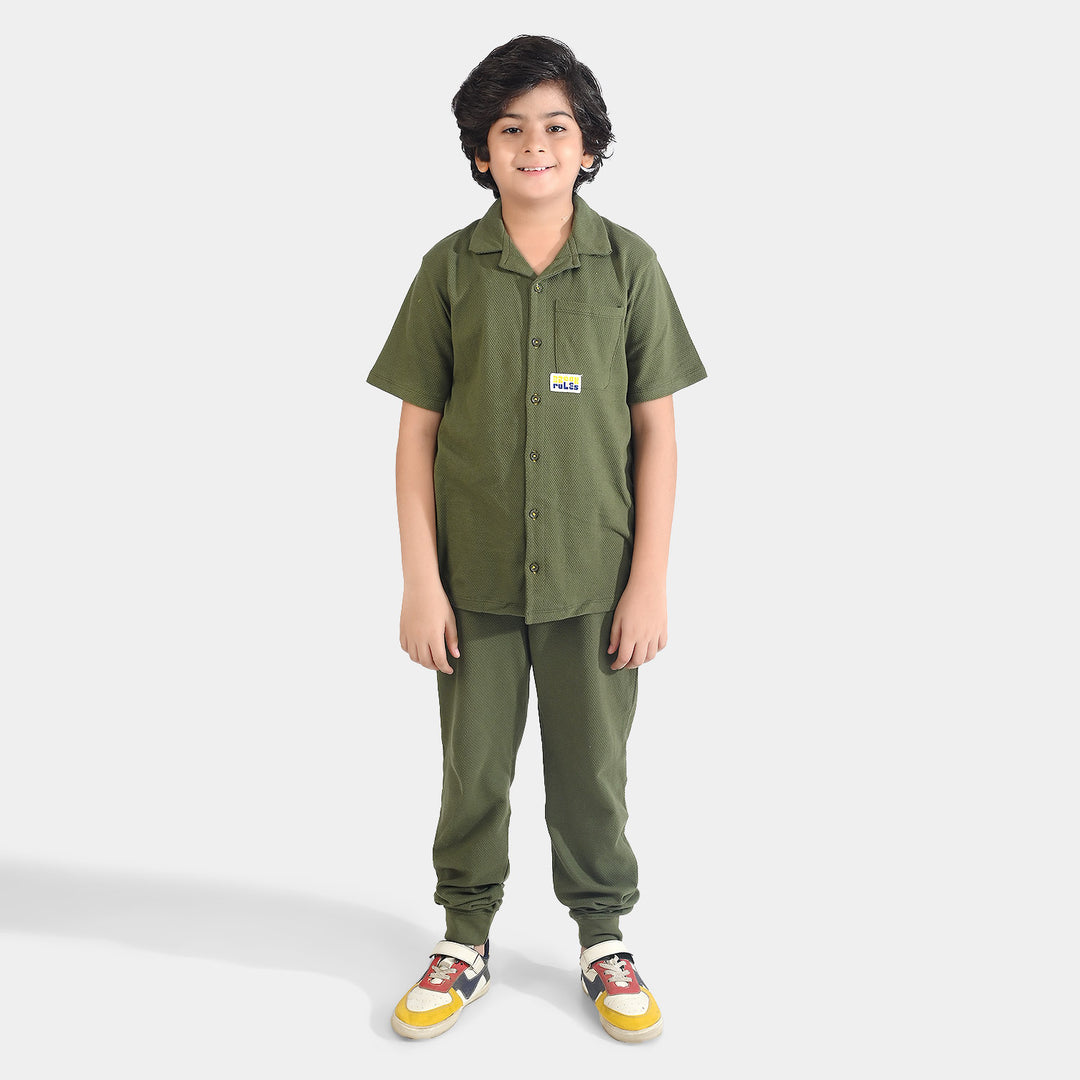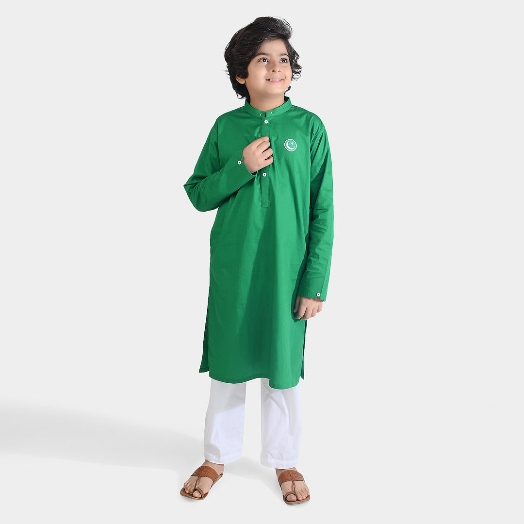 Boys Cotton Poplin Shirt (Pak Zinda Bad)-GREEN