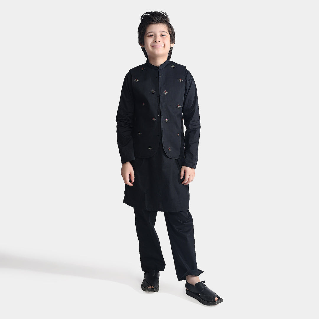 Boys Poly Viscose Kurta Pajama Suit (Monotone)-T.Blue