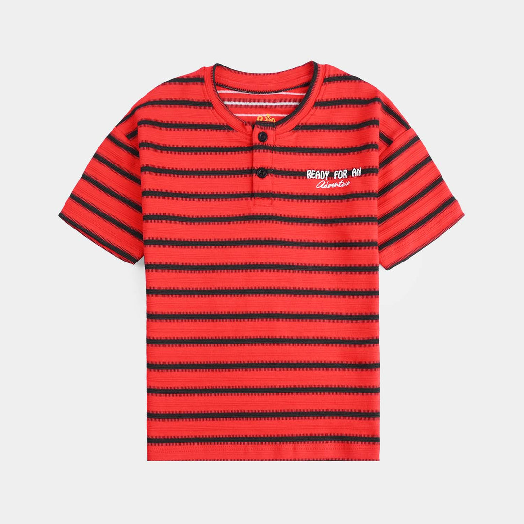 Boys Yarn Dyed T-Shirt H/S Trouble Maker-NAVY
