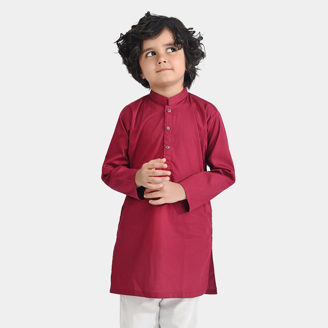 Boys Cotton Poplin Basic Kurta (Beet Red)-Red