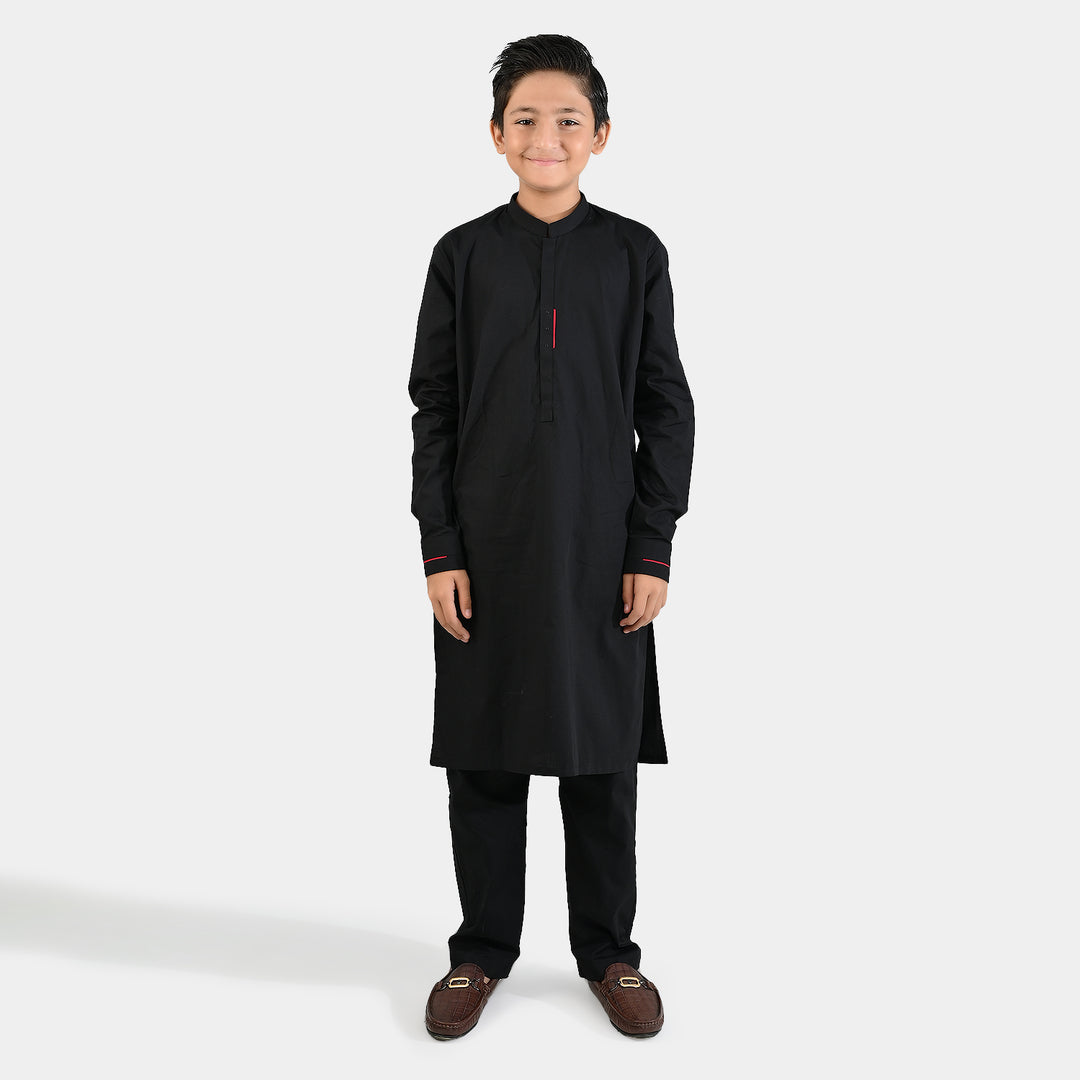 Boys Poly Viscose Kurta Shalwar Suit (Blended)-BLACK