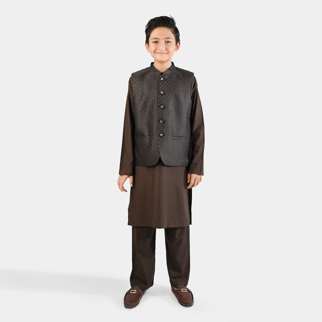 Boys Cotton Shalwar Suit (Tone On Tone)-Rust