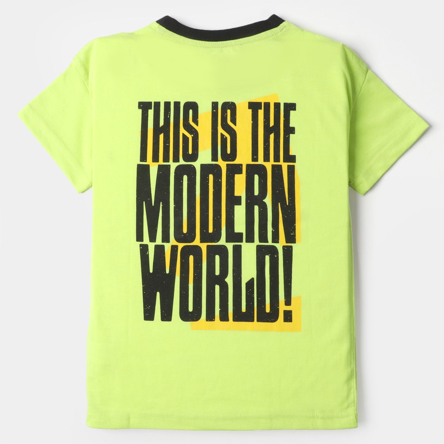 Get ready to stand out with our bold and playful range of boys' casual t-shirts. The shirt features Modern World theme in Neon Green and black color, round neck, half sleeves and premium quality, breathable fabric. We offer eye-catching designs and vibrant prints for your kid to stand out.