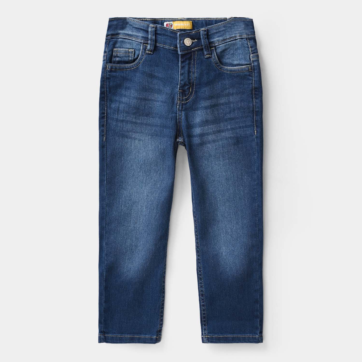 Boys basic denim viscose pants in medium blue, designed for a comfortable and stylish everyday look.