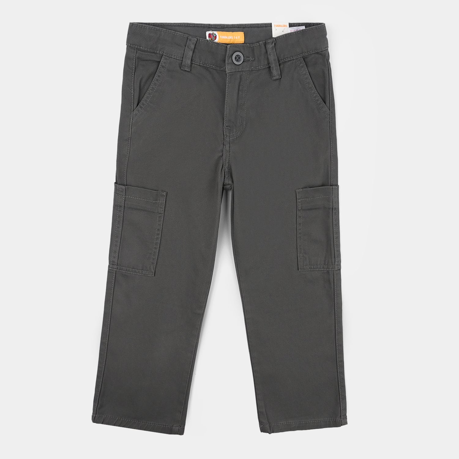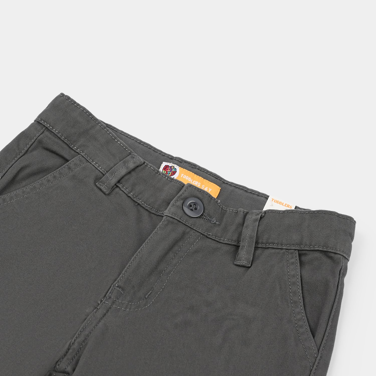 These boys dark grey twill pants feature a cargo-style cut, providing a comfortable fit perfect for everyday wear.