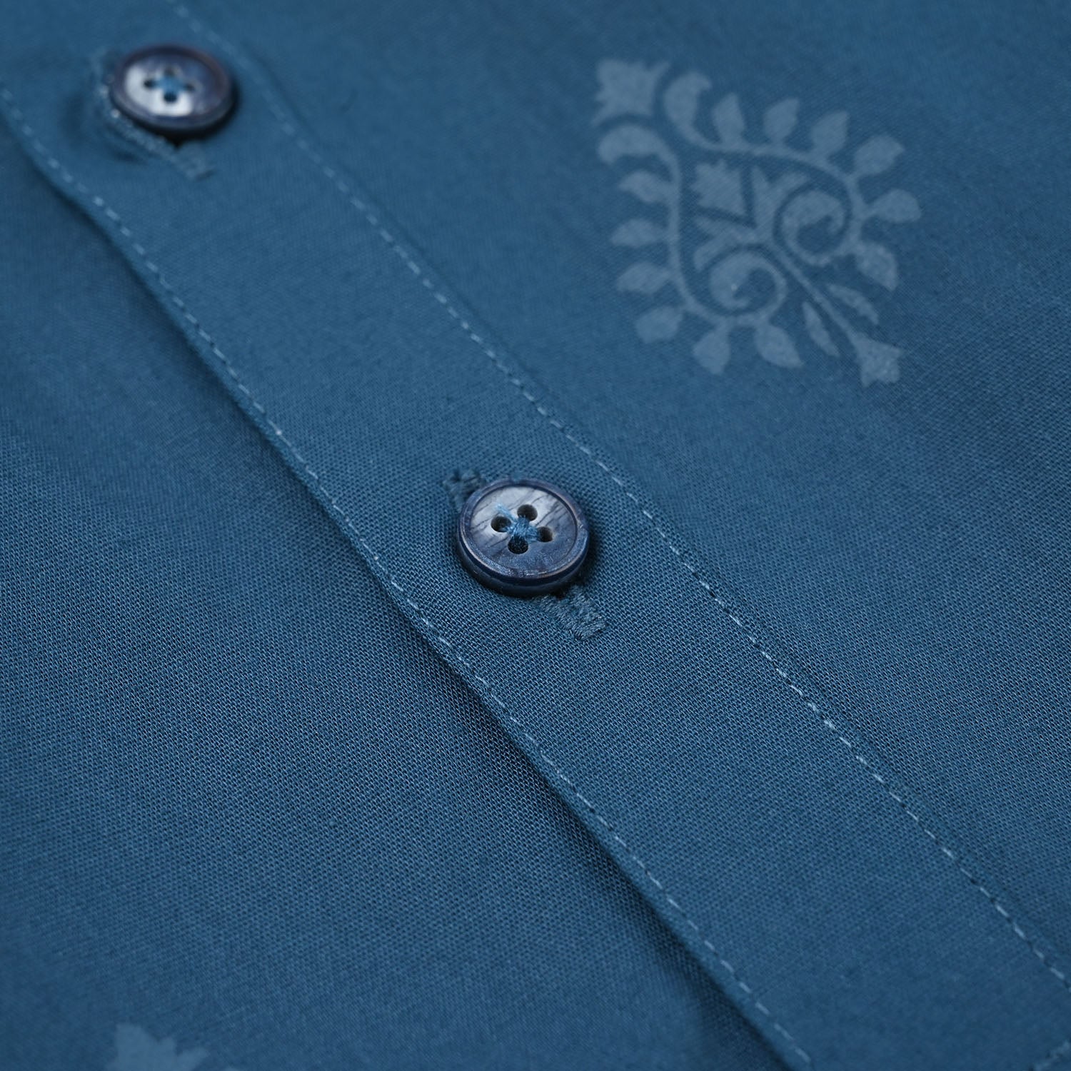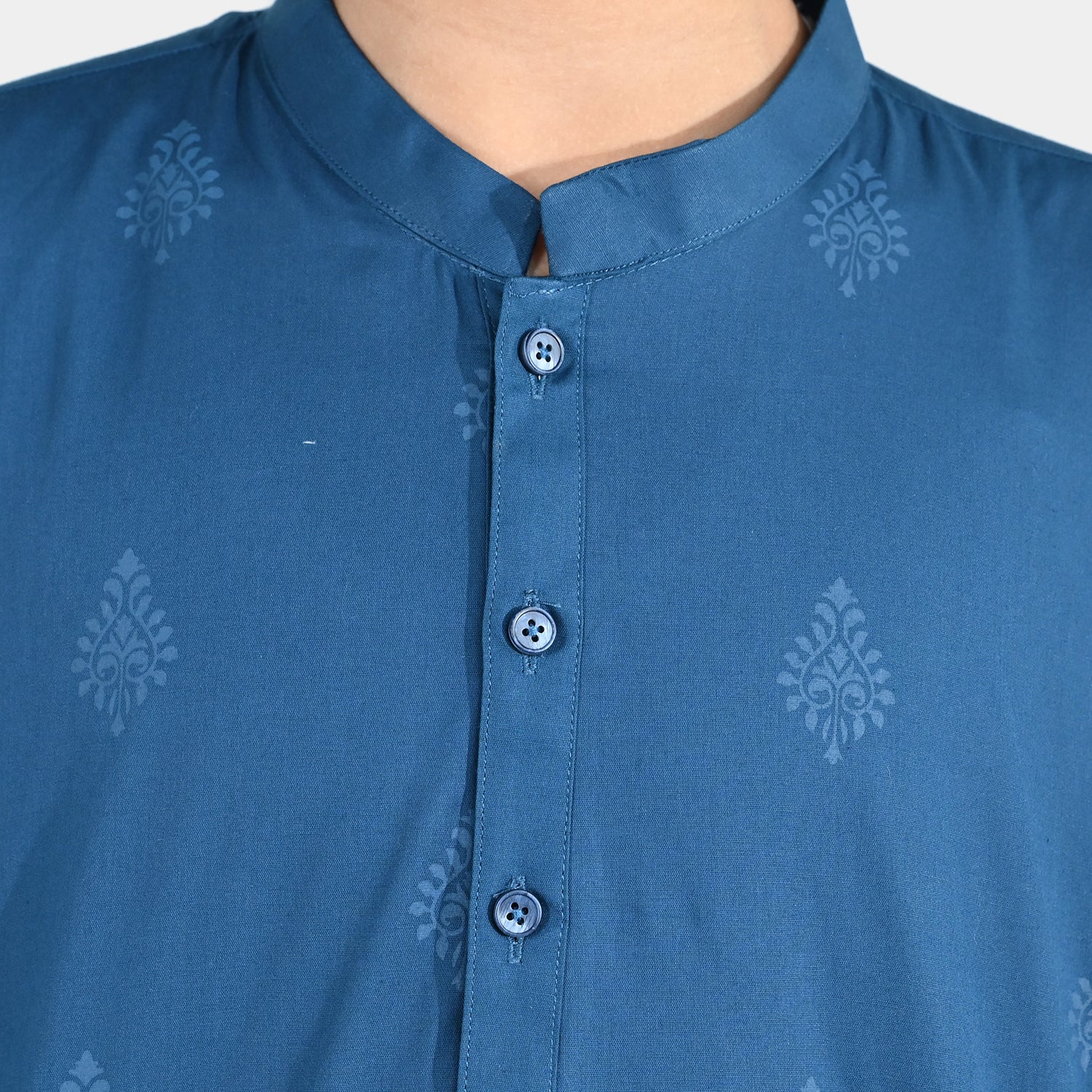 This green printed boys poplin kurta features a classic sherwani collar and full sleeves, giving your little one a smart traditional look for any occasion.