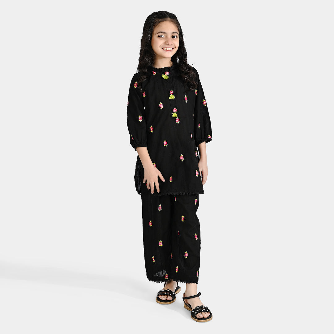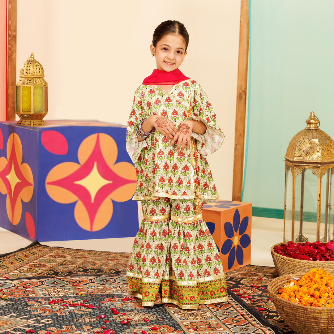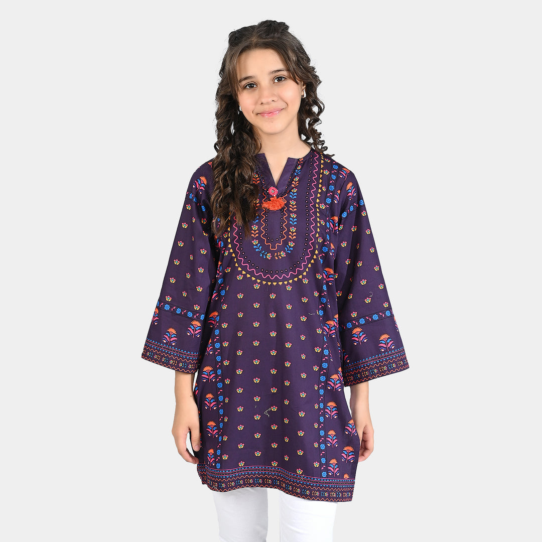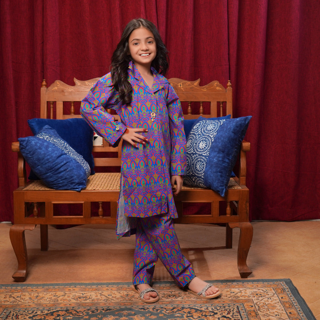 Girls Poly Cambric Printed 2Pcs Suit Ikat-Multi