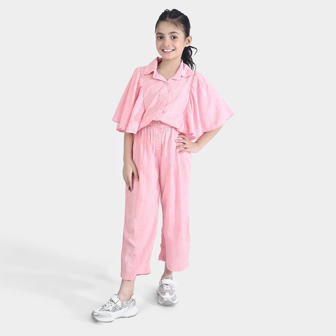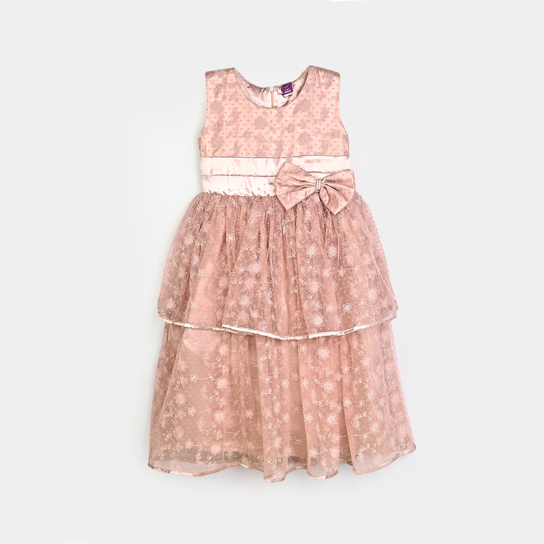 Girls Cotton Poplin Casual Frock Pink Frill-Pink