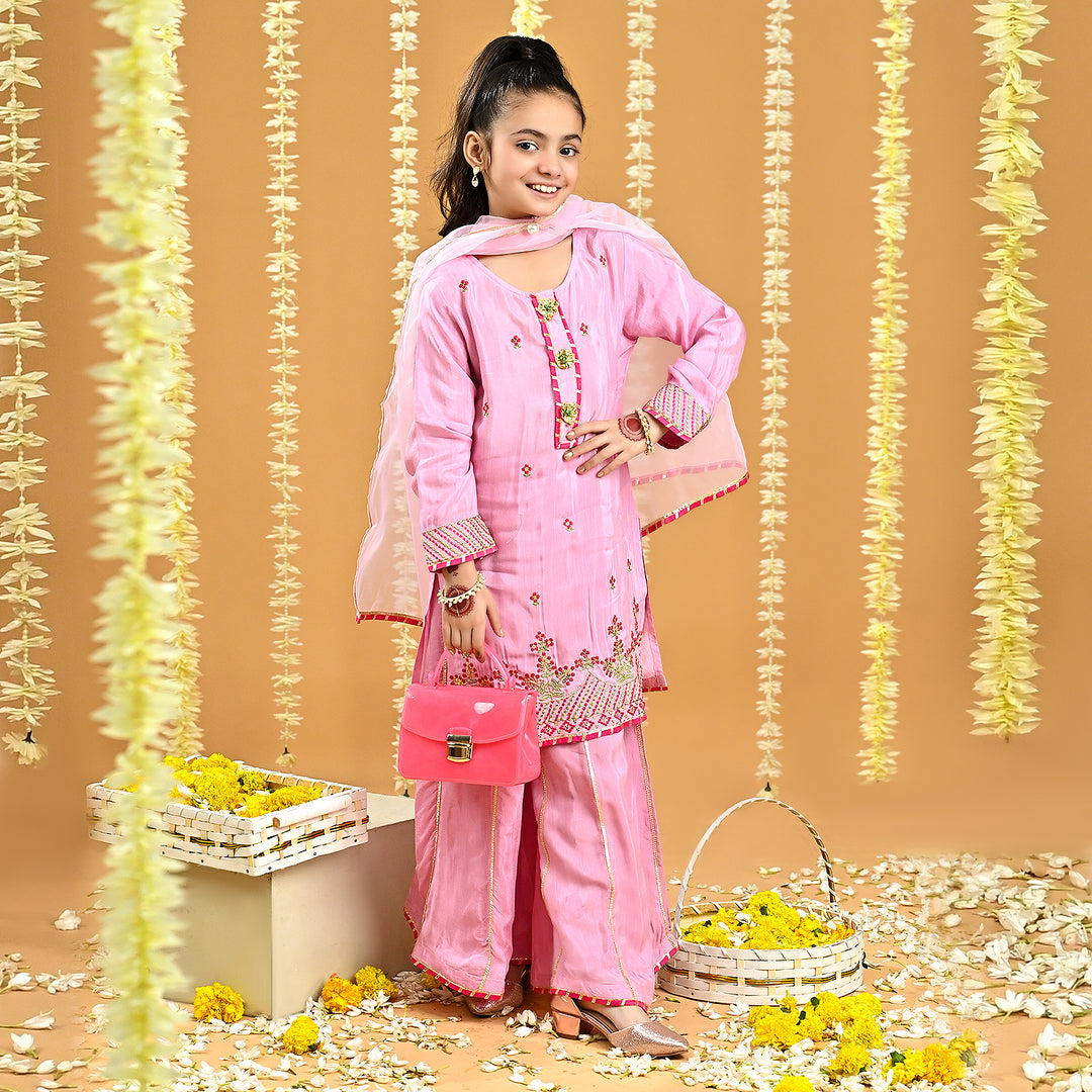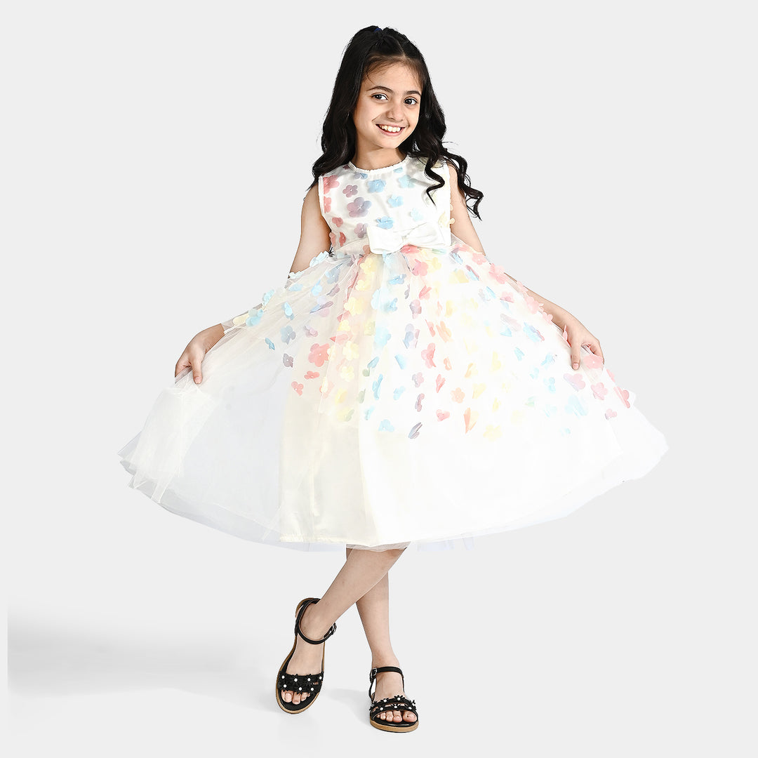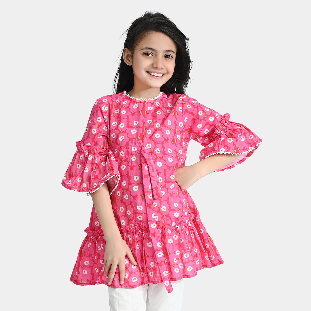 Girls Poly Cambric Casual Frock Groovy Floral-Pink