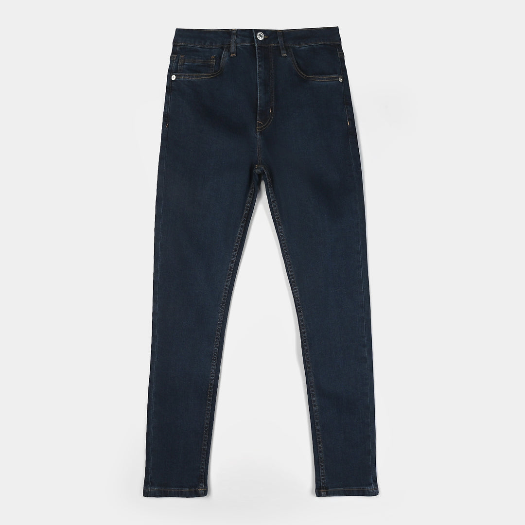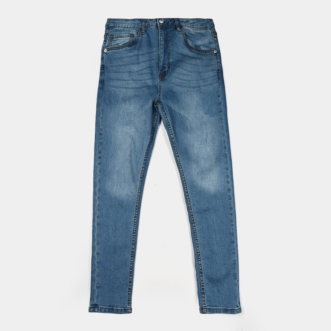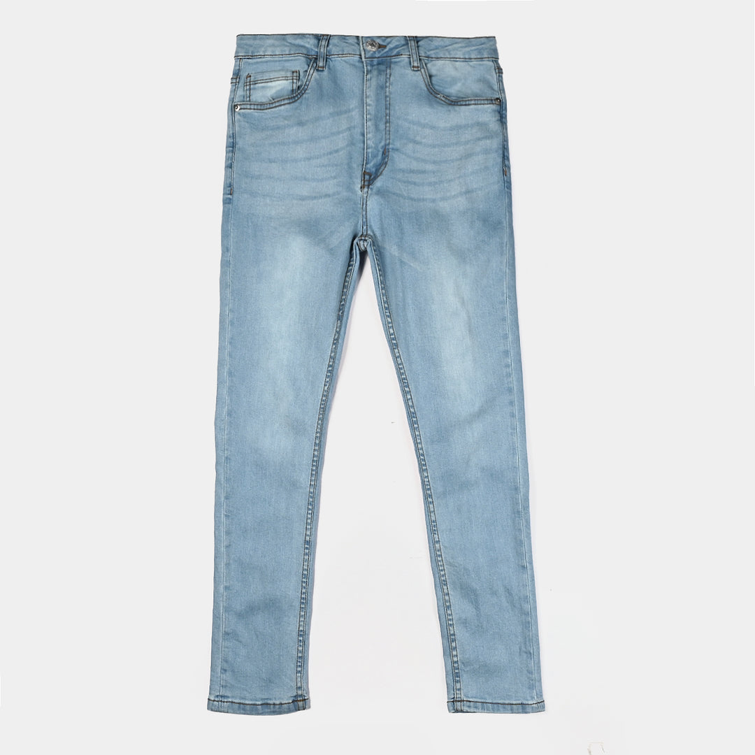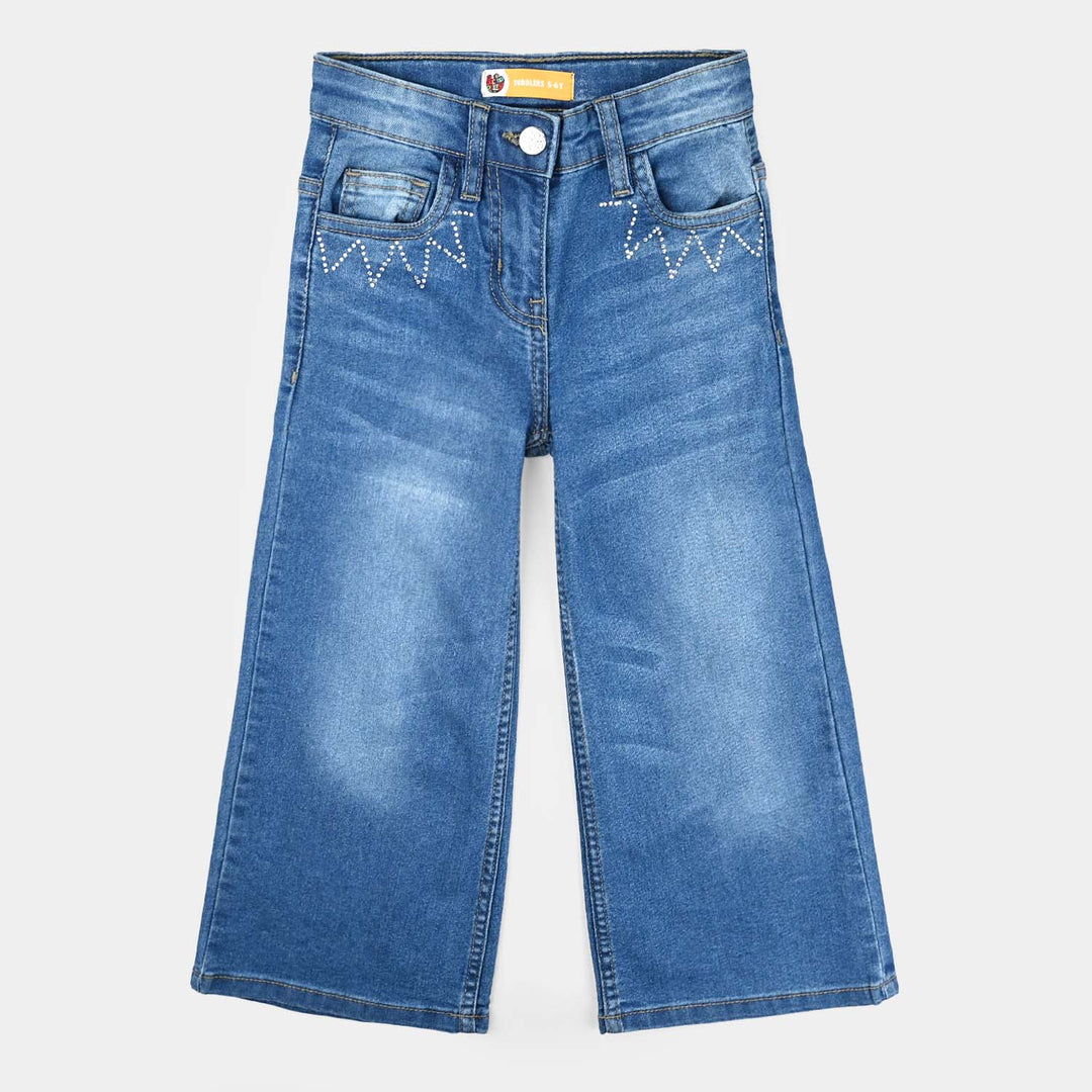 Girls Denim Stretch Pant Pearl At Pocket-Light Blue