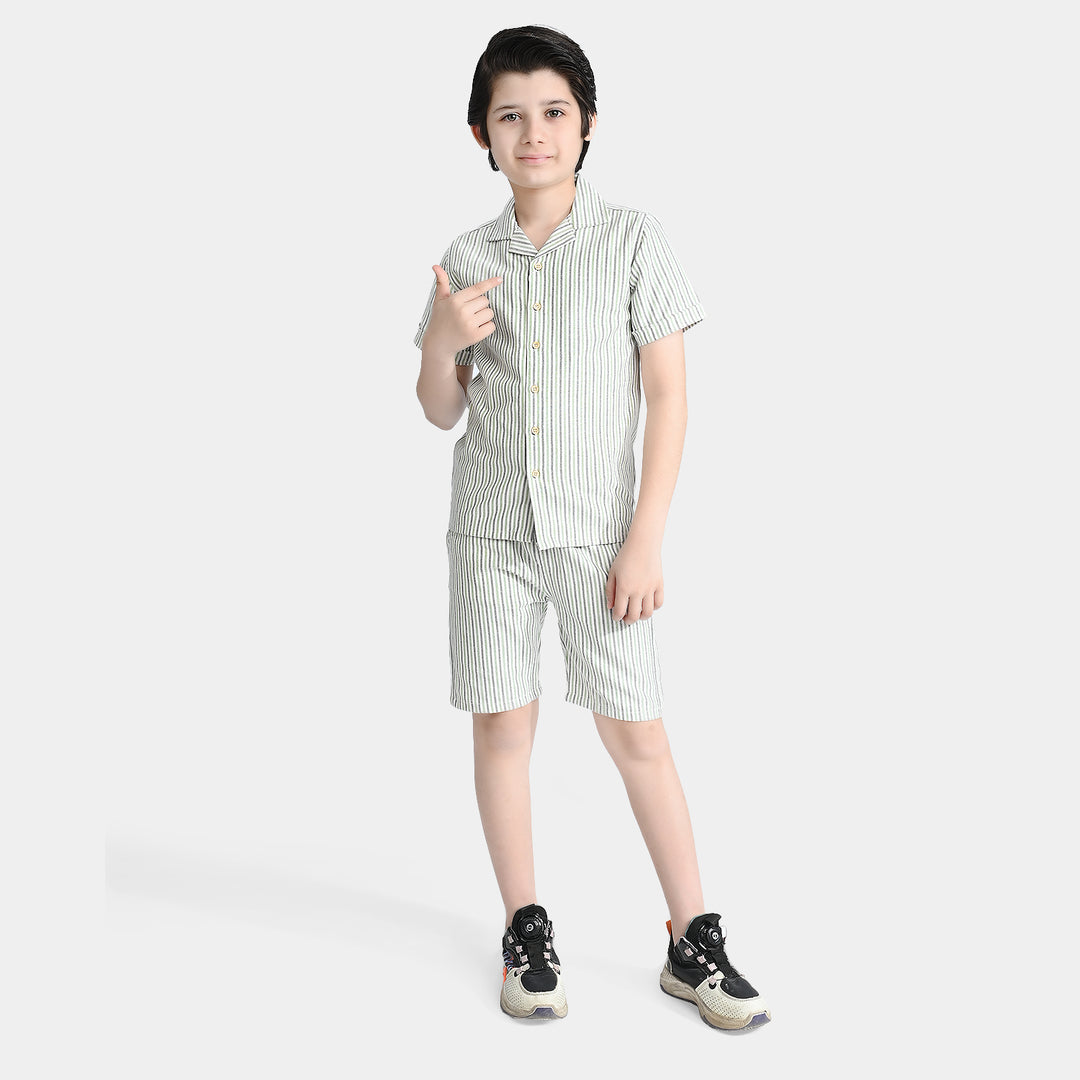 Boys Yarn Dyed Shalwar Suit (Ban Collar)-Grey Stripe