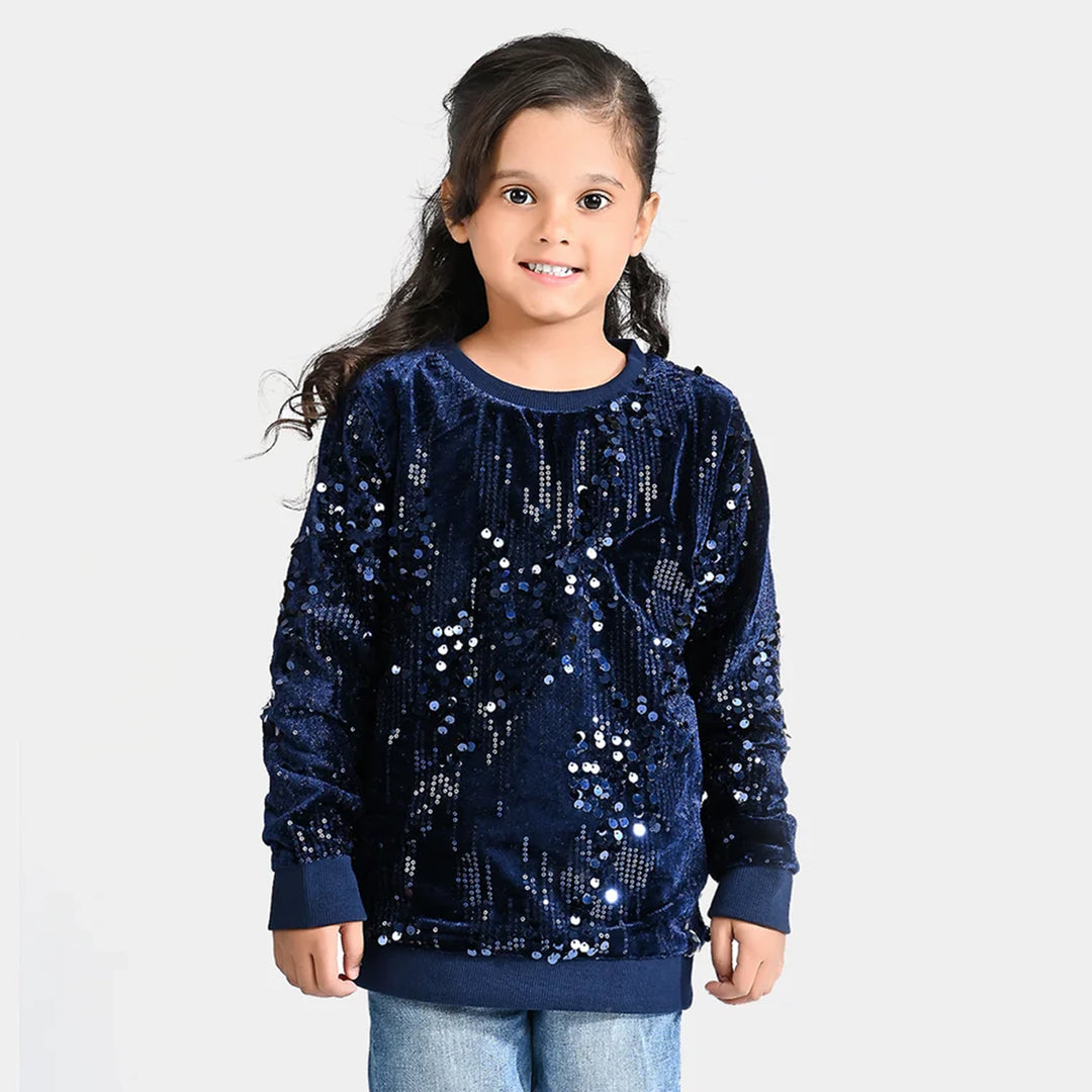 Girls Cotton Terry Sweatshirt Character -NAVY