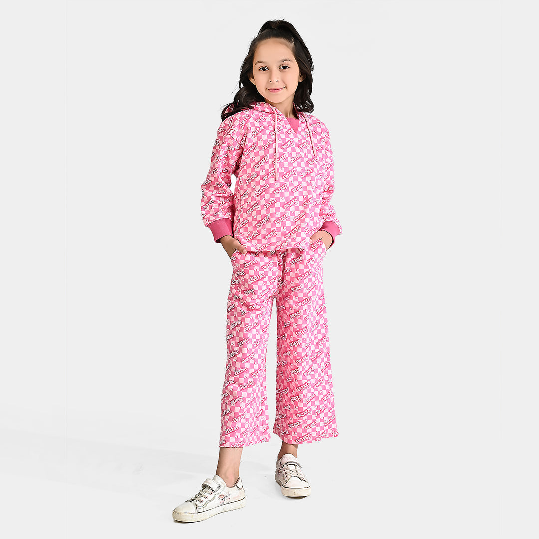 Girls Cotton Terry Pyjama Good Vibes-Sachet Pink