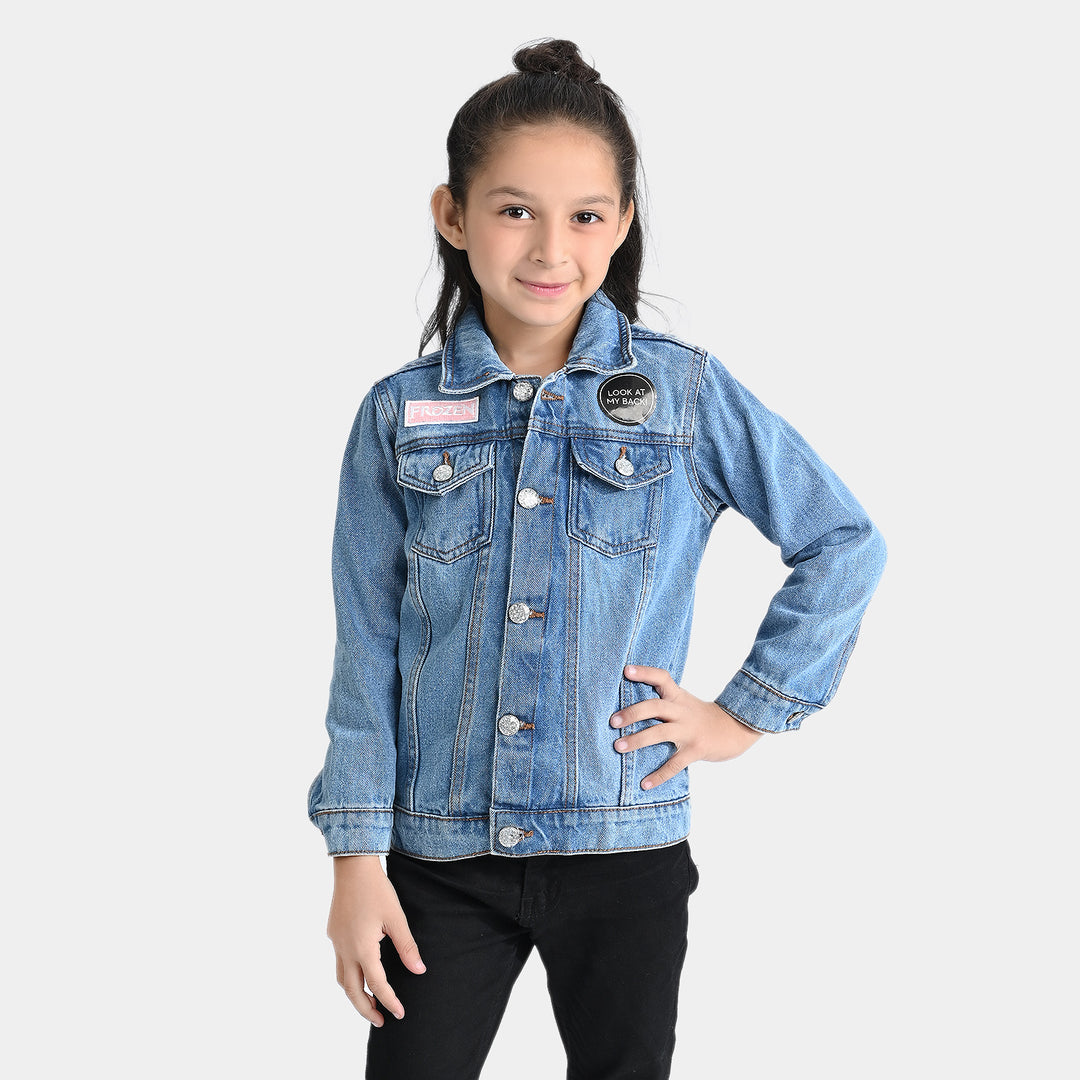 Girls Denim rigid Jacket Silver Studs-Mid Blue