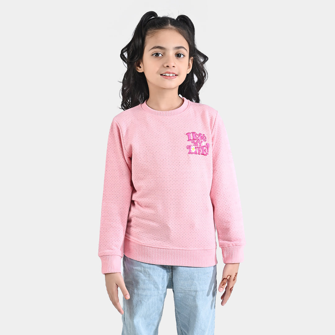 Girls Cotton Terry Sweatshirt Kindness Is Free-Pink