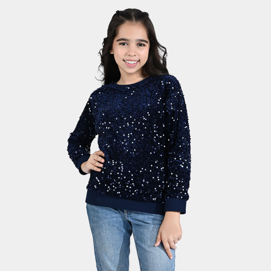 Girls Cotton Terry Sweatshirt I Adore You-Navy Blue