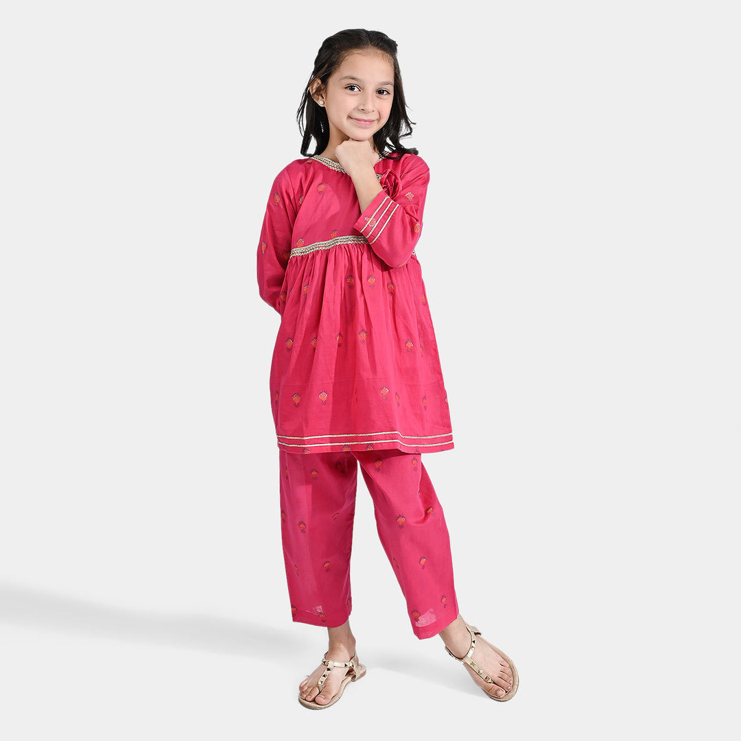 Girls Cotton Poplin EMB 2 Pcs Suit Flora-BLACK