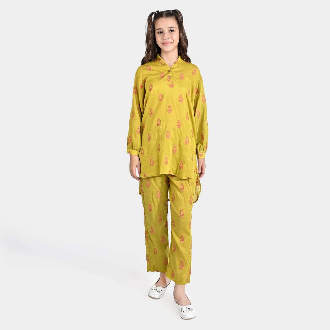 Girls Cotton Poplin EMB Kurti Saroor-C.Yellow