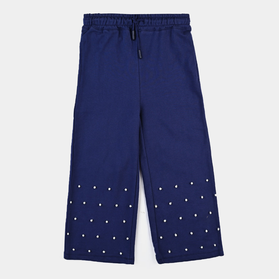 Girls Cotton Twill Pant Pleats & Pearls-Navy Blue