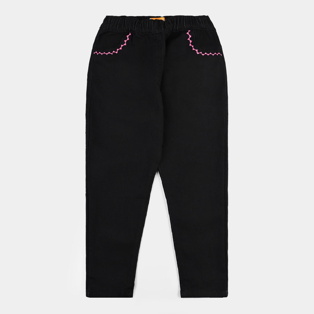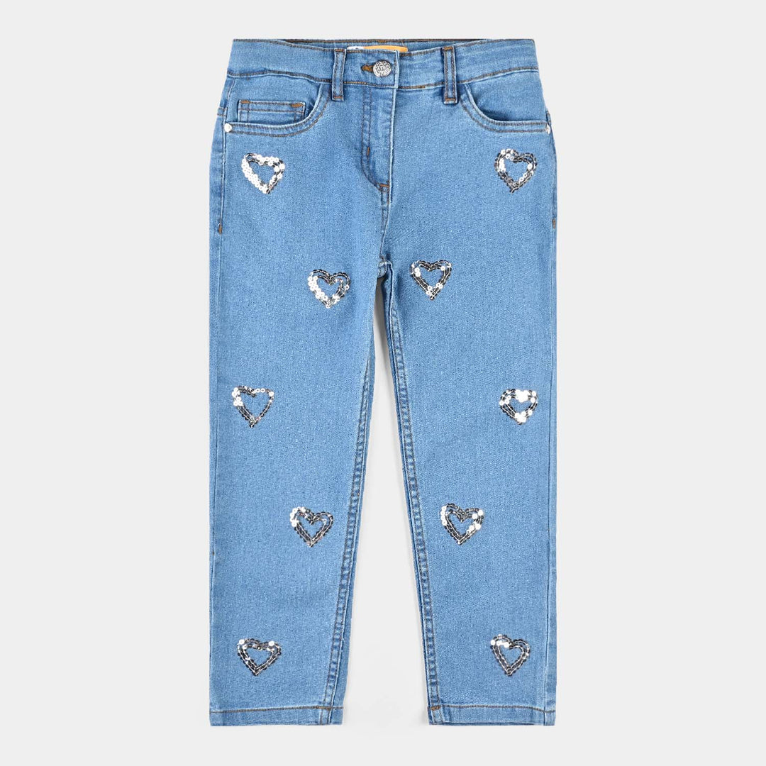 Girls Denim Stretch Pant Big Pearls-Mid Blue