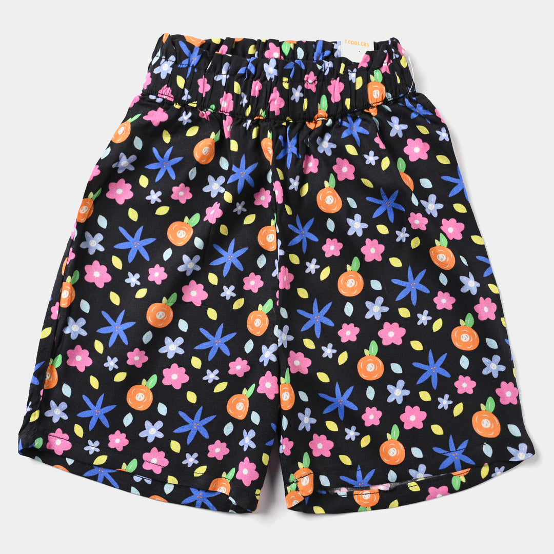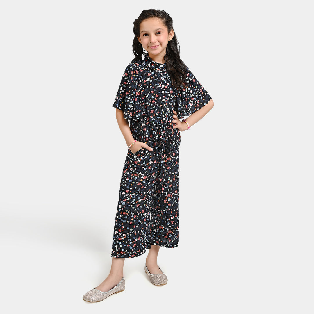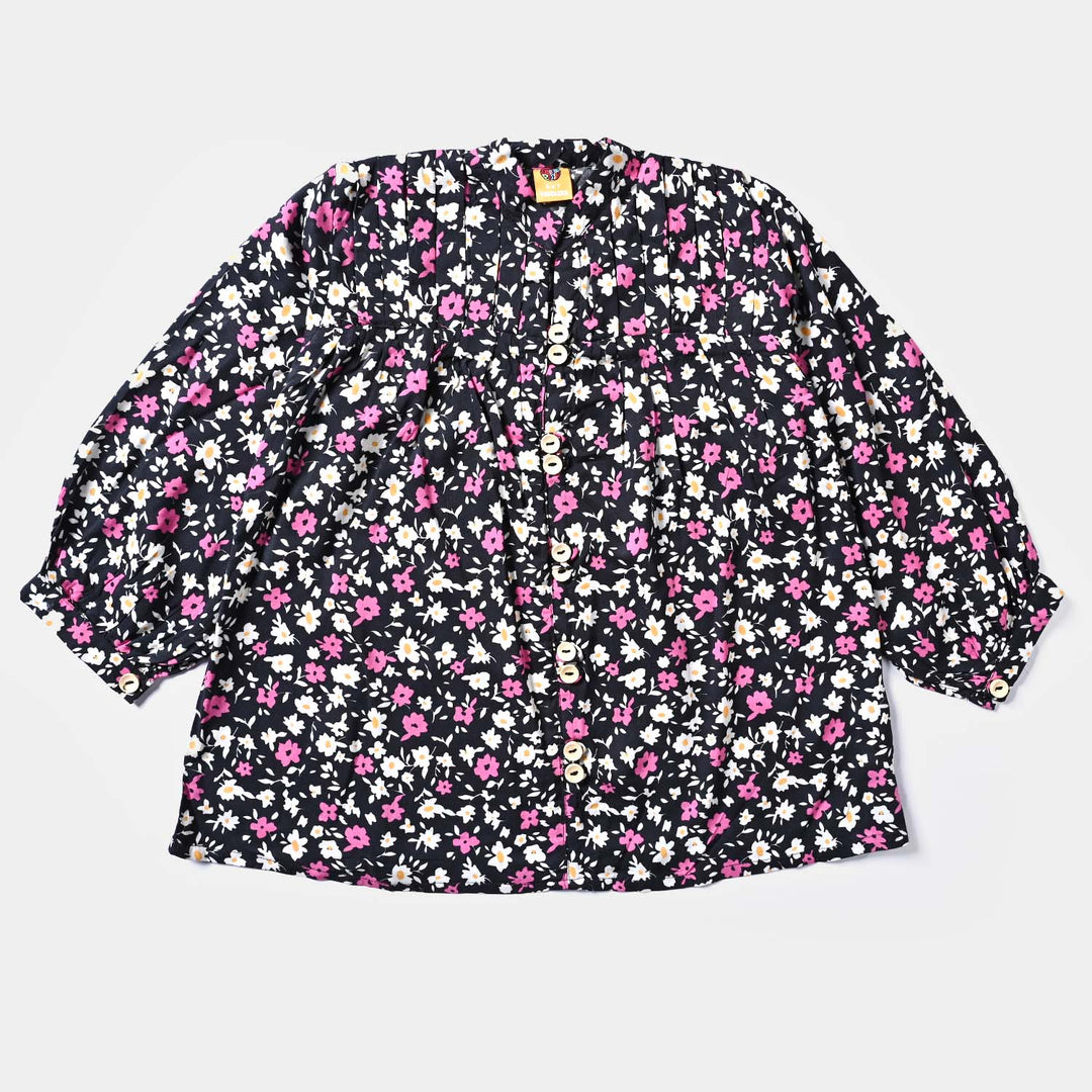 Girls Cotton Poplin Casual Frock Fusion Flora-BLACK