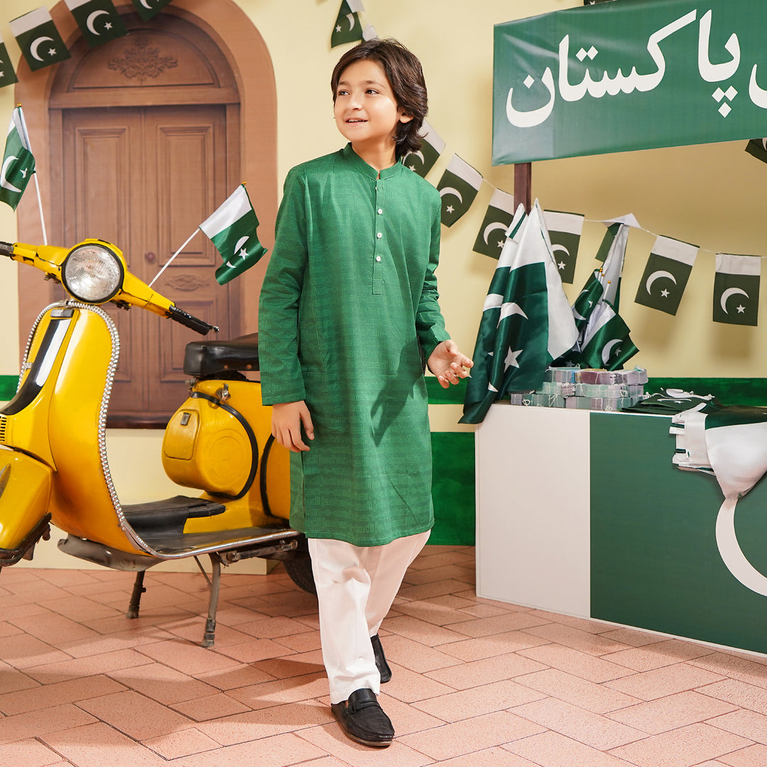 Boys Jacquard Basic Kurta (Self Boti)-Turkish