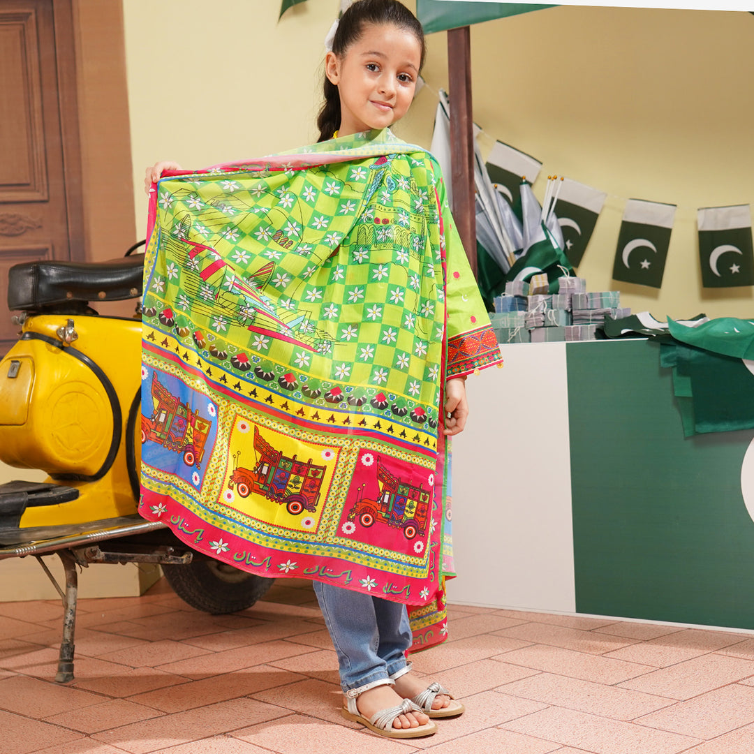 Girls Cotton Poplin IND kurti Hamari Sawari-Green