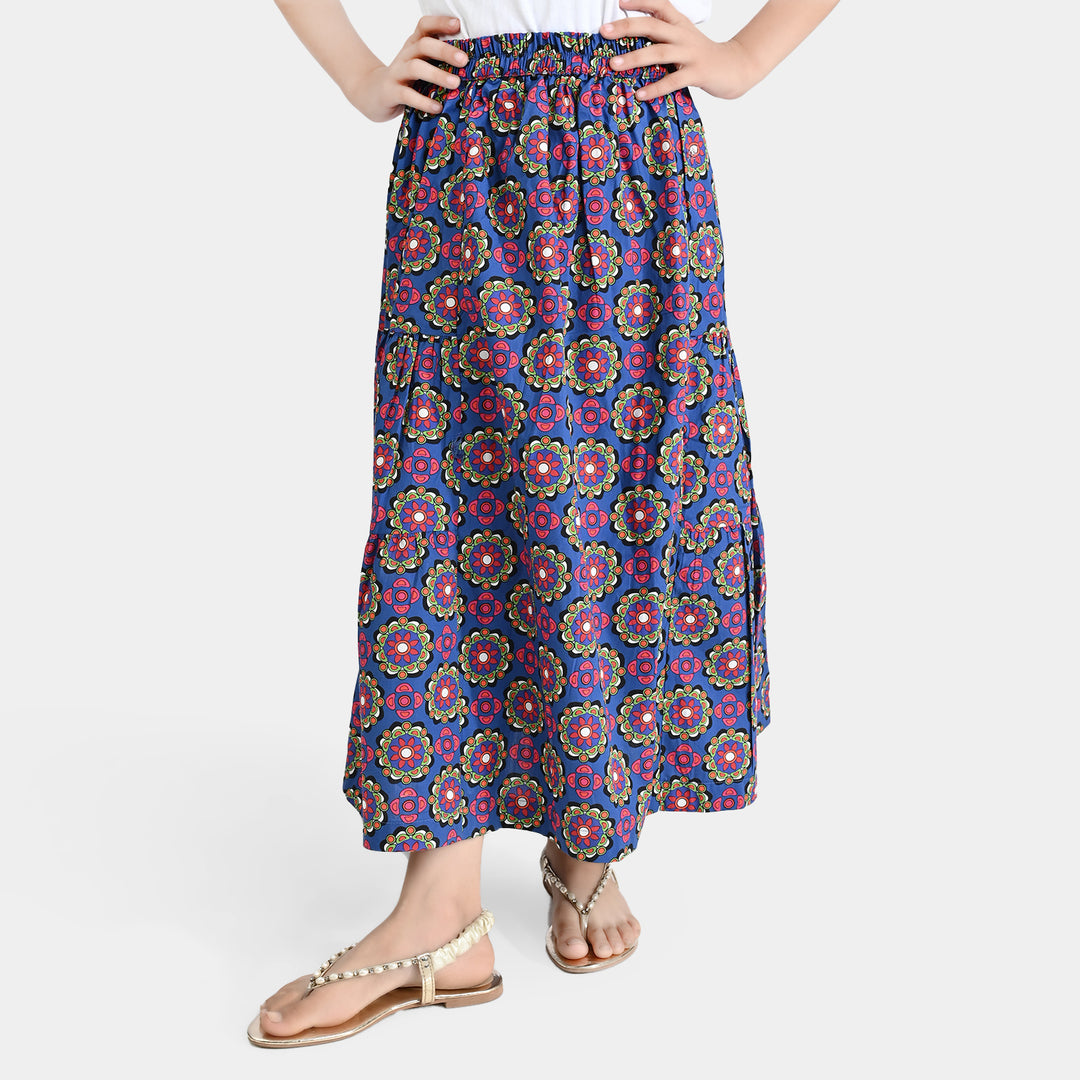 Girls Cotton Poplin Long Skirt Orangeade-ORANGE