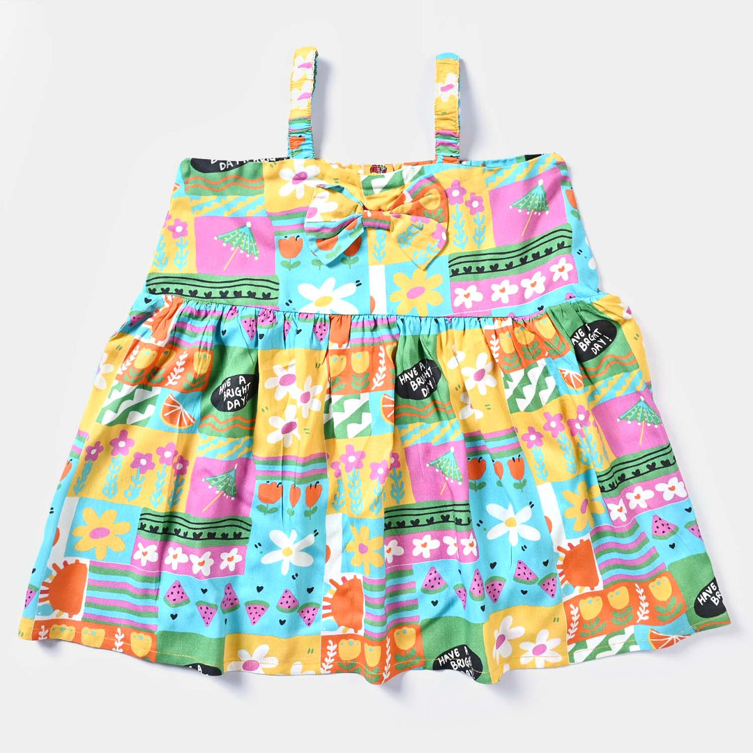 Girls Cotton Poplin Printed Kurti Fusion Art-Multi
