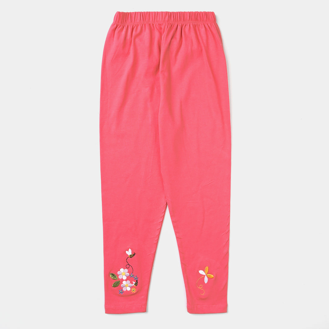 Girls Lycra Jersey Embrioded Tights Flowers-C.Yellow