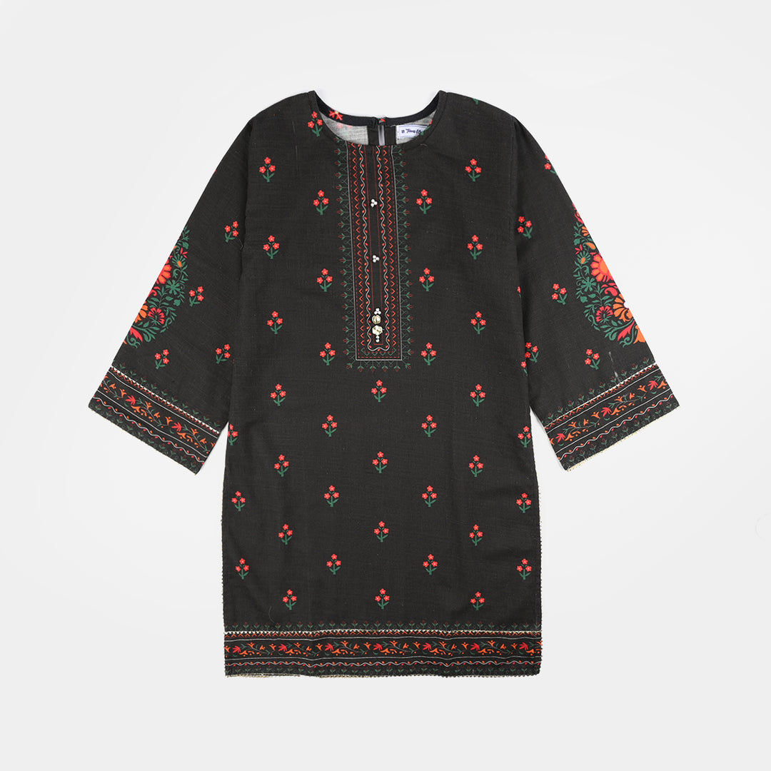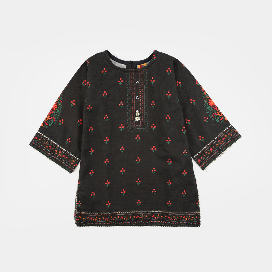 Girls Cotton Slub printed Kurti Red Motif-BLACK