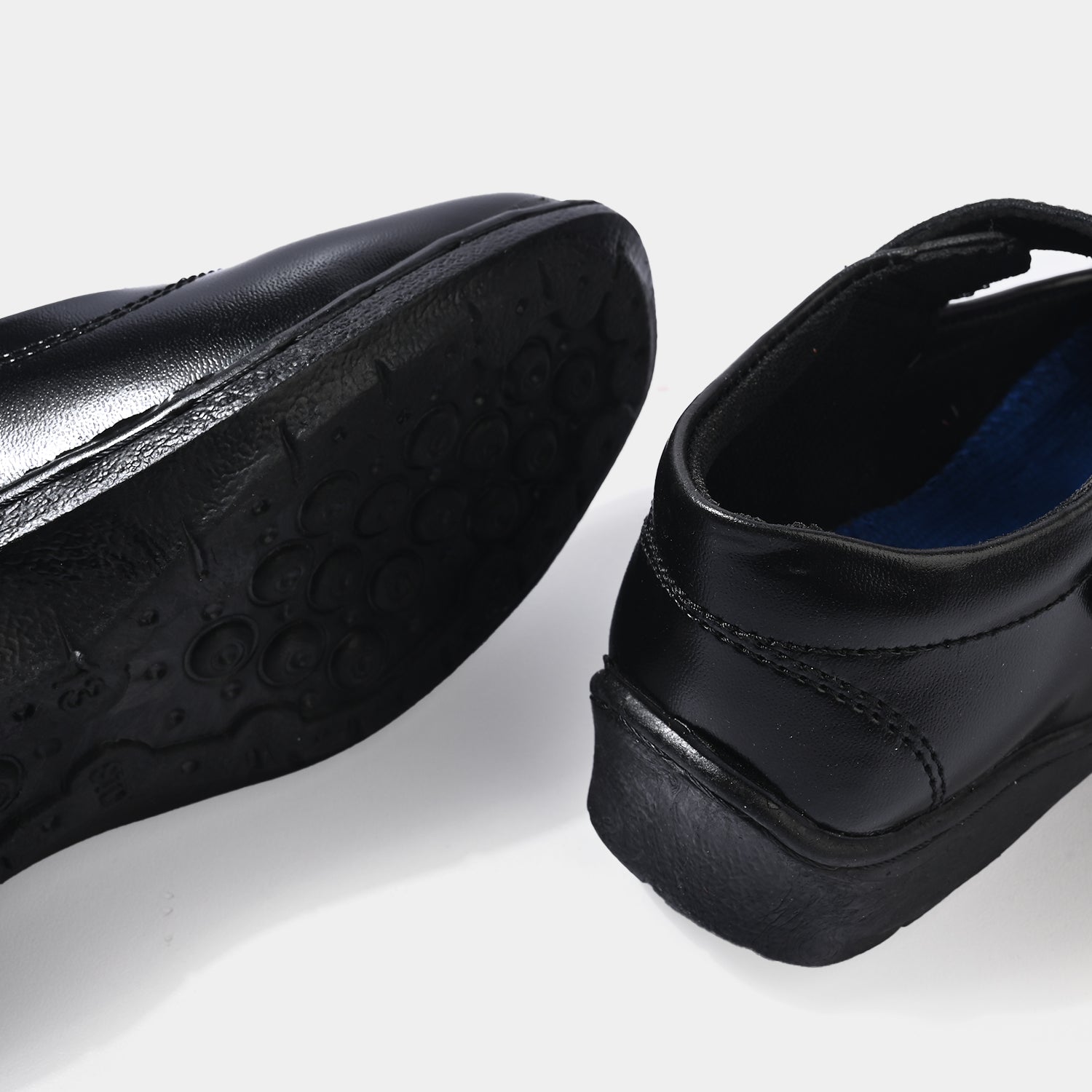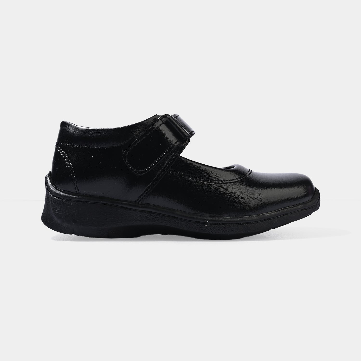 Girls’ black school shoes feature a classic plain design with an adjustable strap for a perfect fit. Comfortable and durable, ideal for everyday school wear.