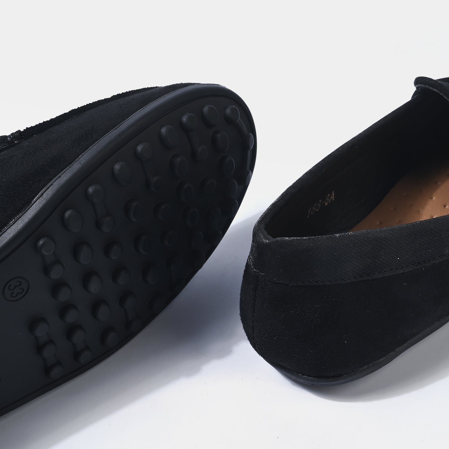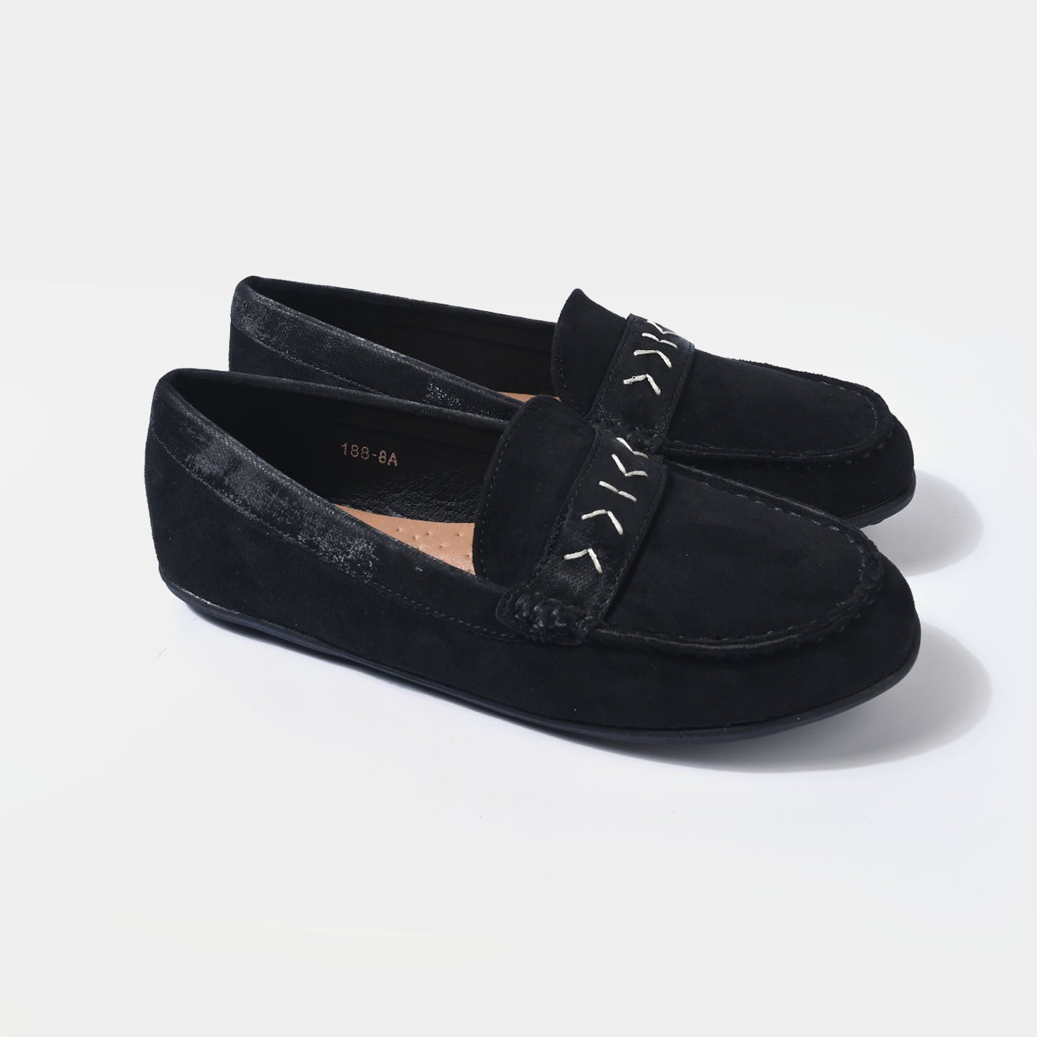 Boys’ loafers in black featuring a velvety finish and design detailing, perfect for a smart and comfortable everyday look.