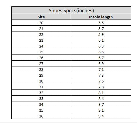 For Shoes: Please allow 0.2 inch +/- tolerance due to manual measurement.