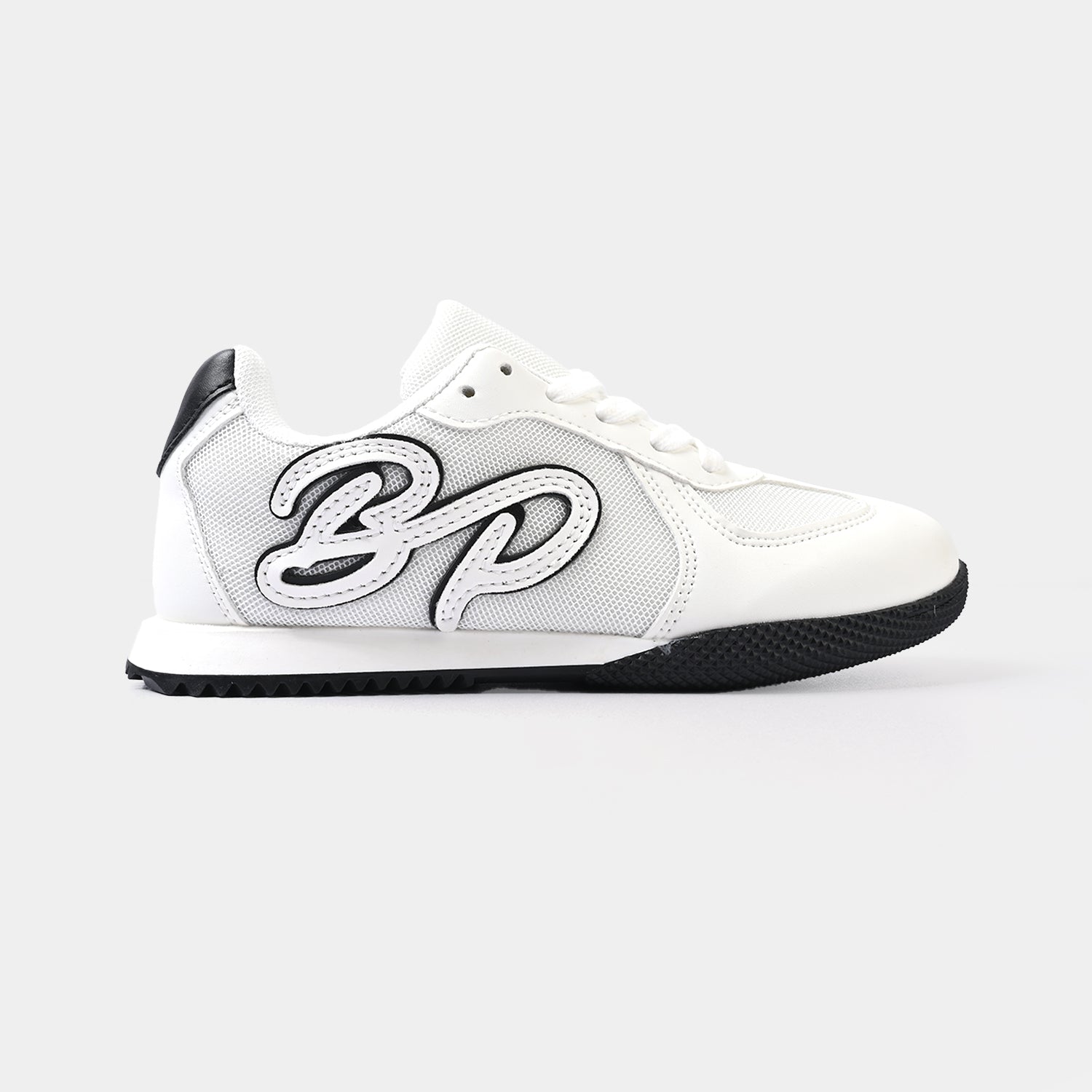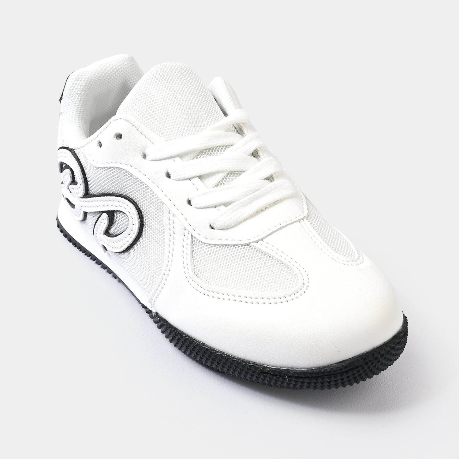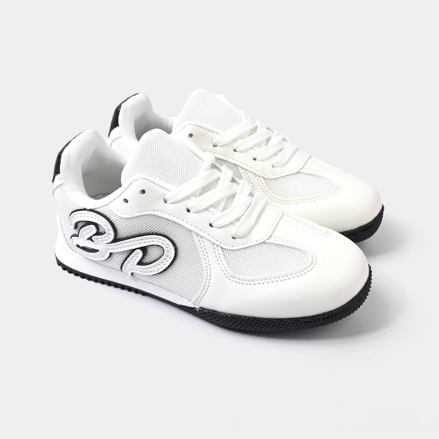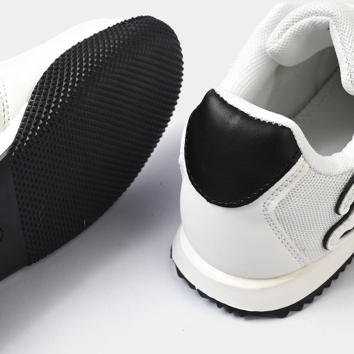 Boys white/black sneakers featuring lace-up grip, a matte finish, and a stylish design, perfect to pair with western outfits for a chic, trendy look.