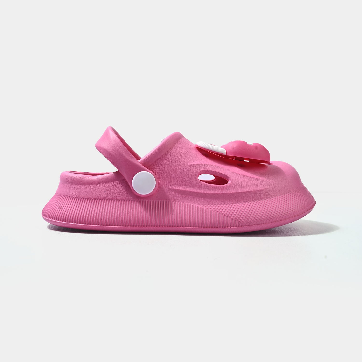 Girls’ fuchsia clogs with Bow embellishments on top and a back strap for a secure, comfortable fit.