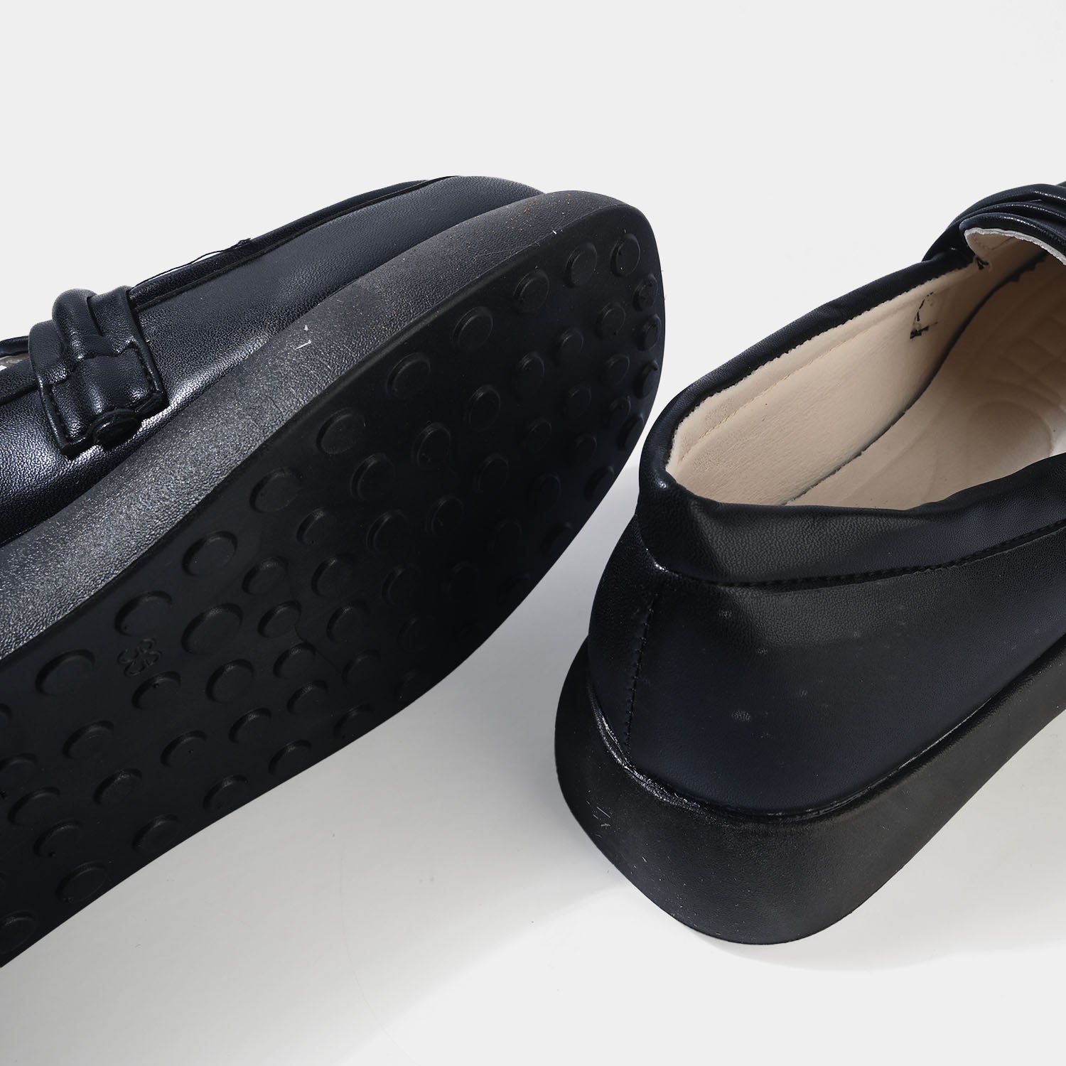 Girls’ loafers in pink with textured detailing and a bow with a knot accent, perfect for a stylish, comfortable everyday look.
