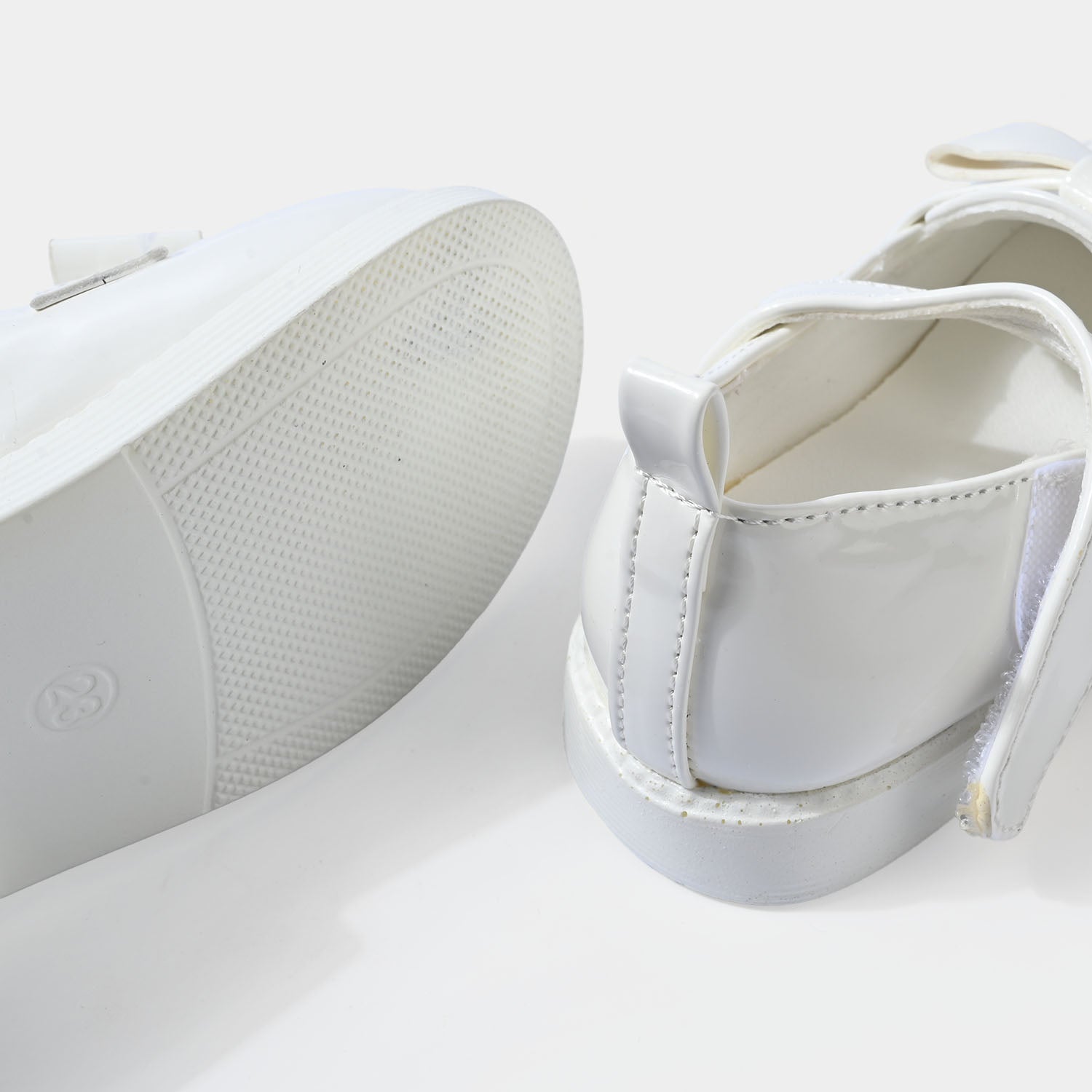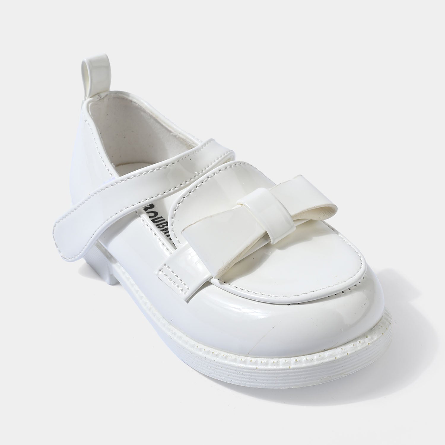 These plain white girls’ pumps feature a delicate design with a strap and bow embellishment, perfect for casual everyday wear.