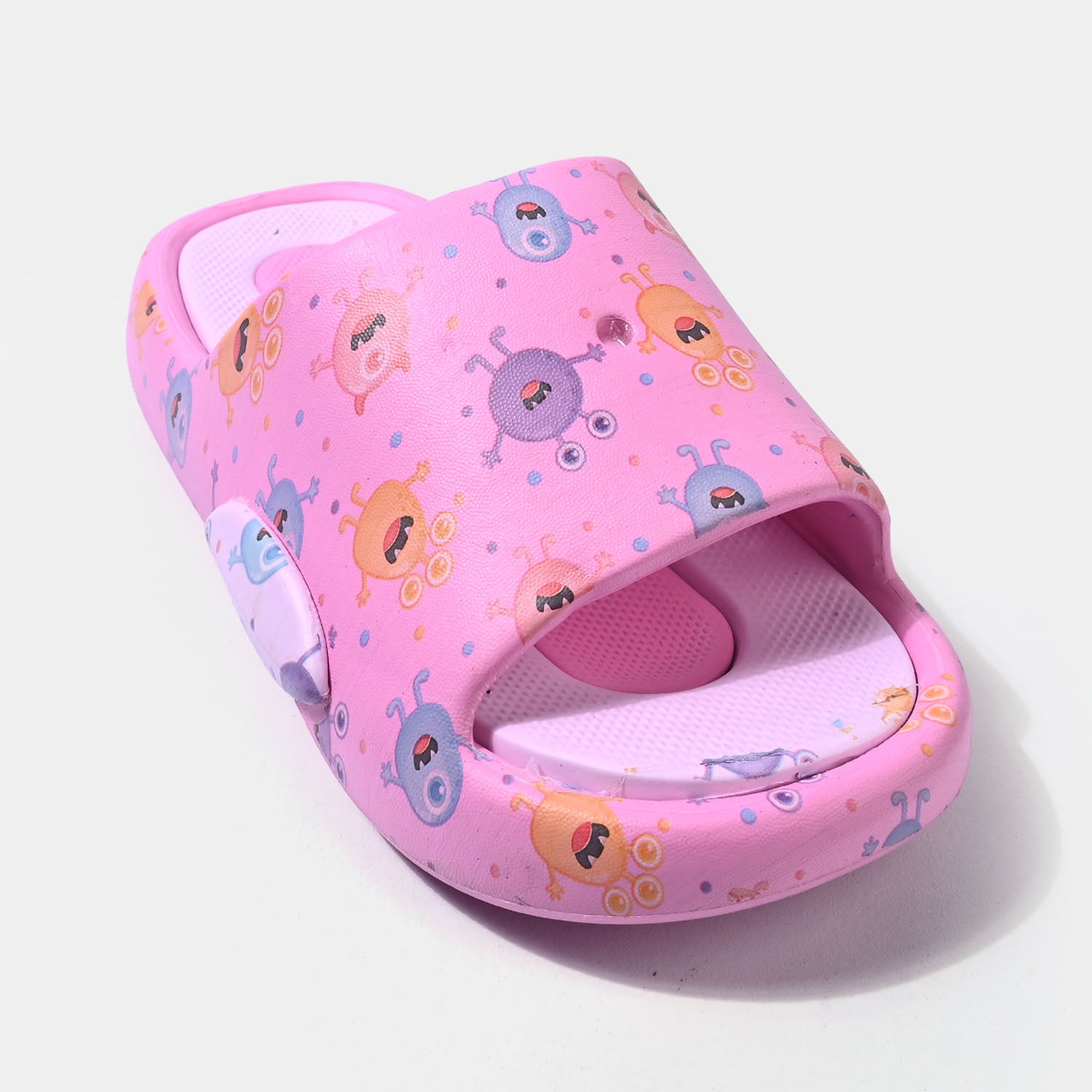 Girls’ pink monster-themed slippers with cushioned soles. Cozy and comfortable, perfect for keeping little feet happy at home.