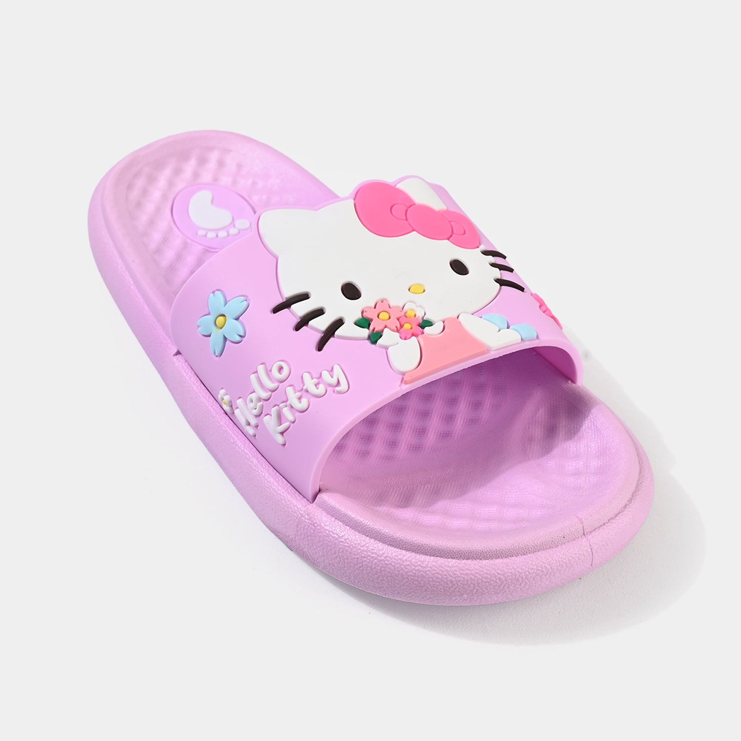 Girls’ slippers in purple, featuring a fun Hello Kitty-themed design. Comfortable and perfect for everyday wear or indoor use.