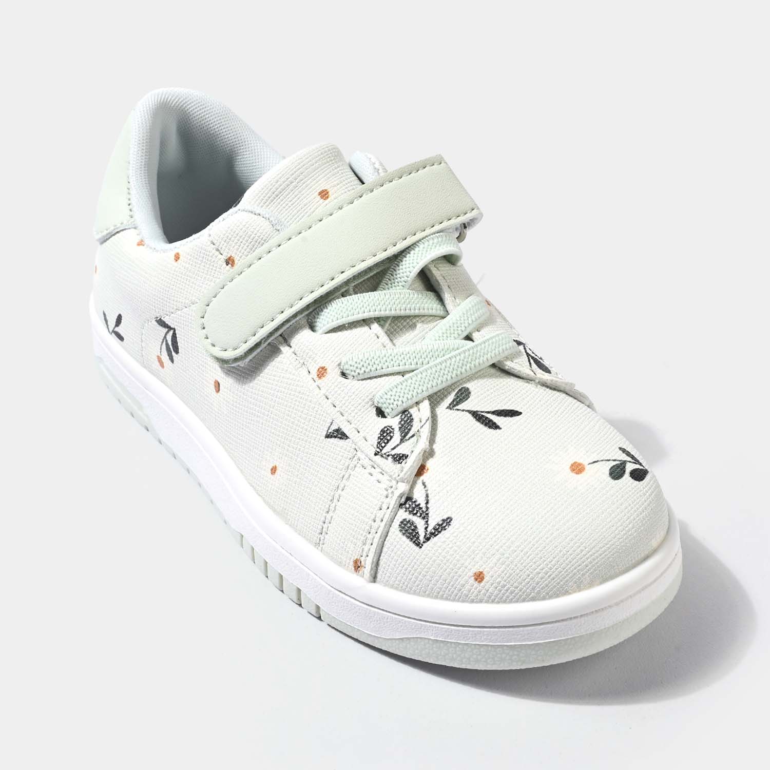 Girls’ white/green floral sneakers are lightweight, breathable, and easy to wear with laces and a hook-and-loop closure. Perfect for everyday wear.