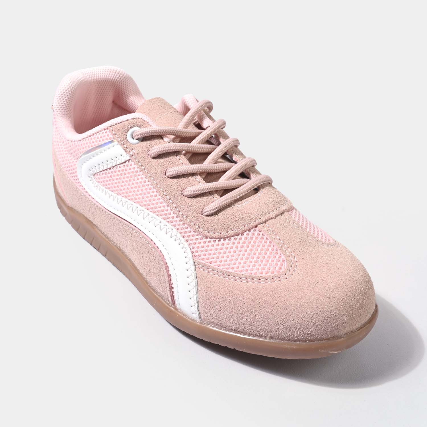 Sneakers for girls featuring a soft pink design with white accents. Lightweight and breathable sneakers with laces, perfect for everyday wear and play.